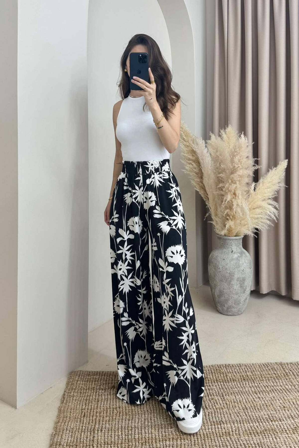 PANTALLONA TË GJERA ME DIZAJNE TË NDRYSHME PËR FEMRA NË NGJYRËN E BARDHË