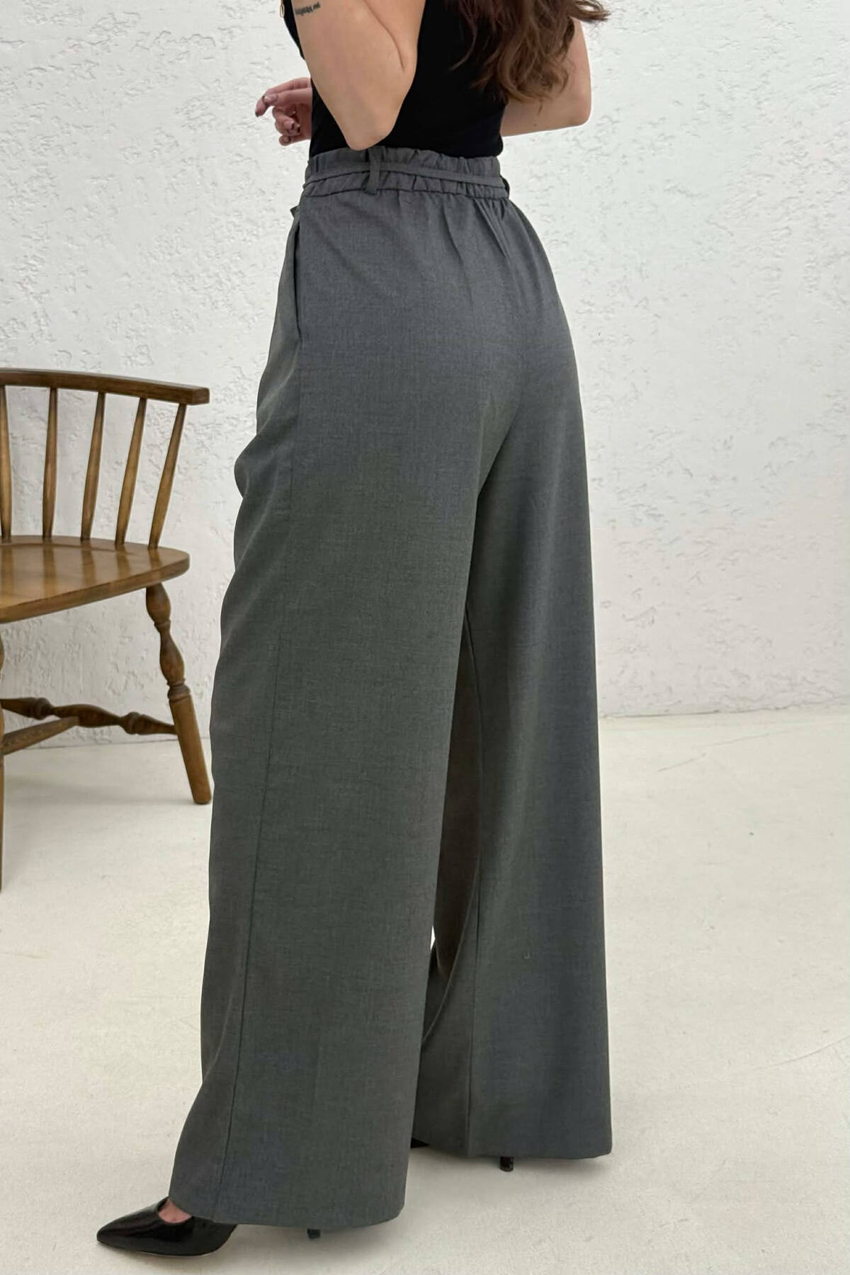 PANTALLONA NJE NGJYRESHE ME DETAJIN E RRIPIT PER FEMRA NE NGJYRE GRI TE ERRET