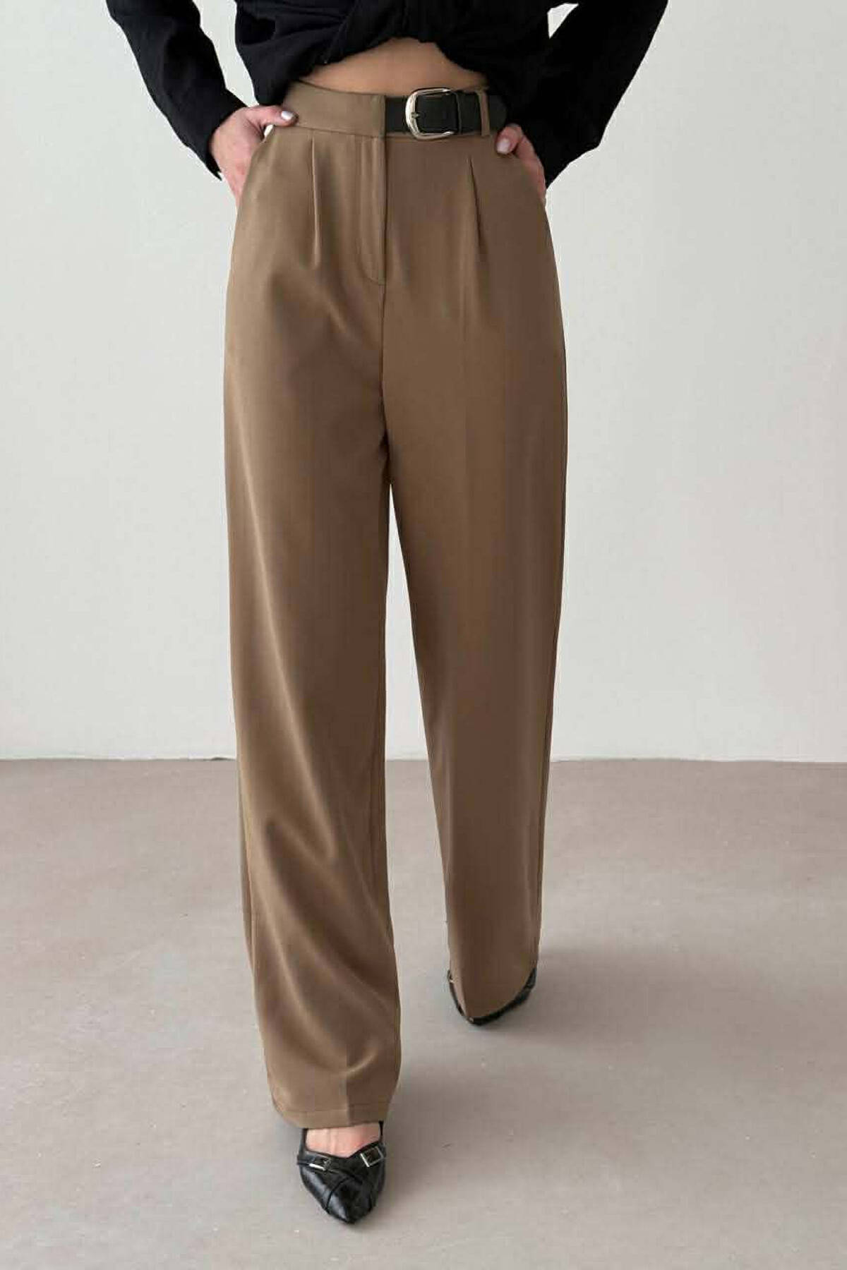 PANTALLONA TE GJERA ME DIZJAN KATRORESH PER FEMRA NE NGJYRE KAFE