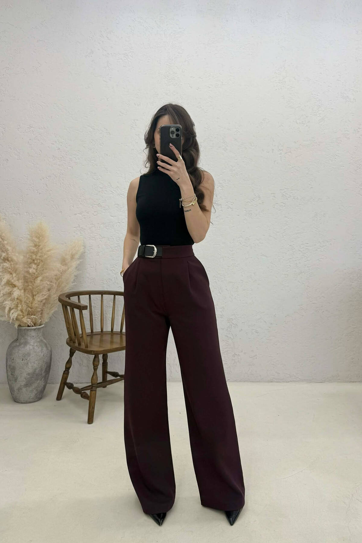 PANTALLONA TE GJERA ME RRIP PER FEMRA NE NGJYRE VISHNJE TE ERRET
