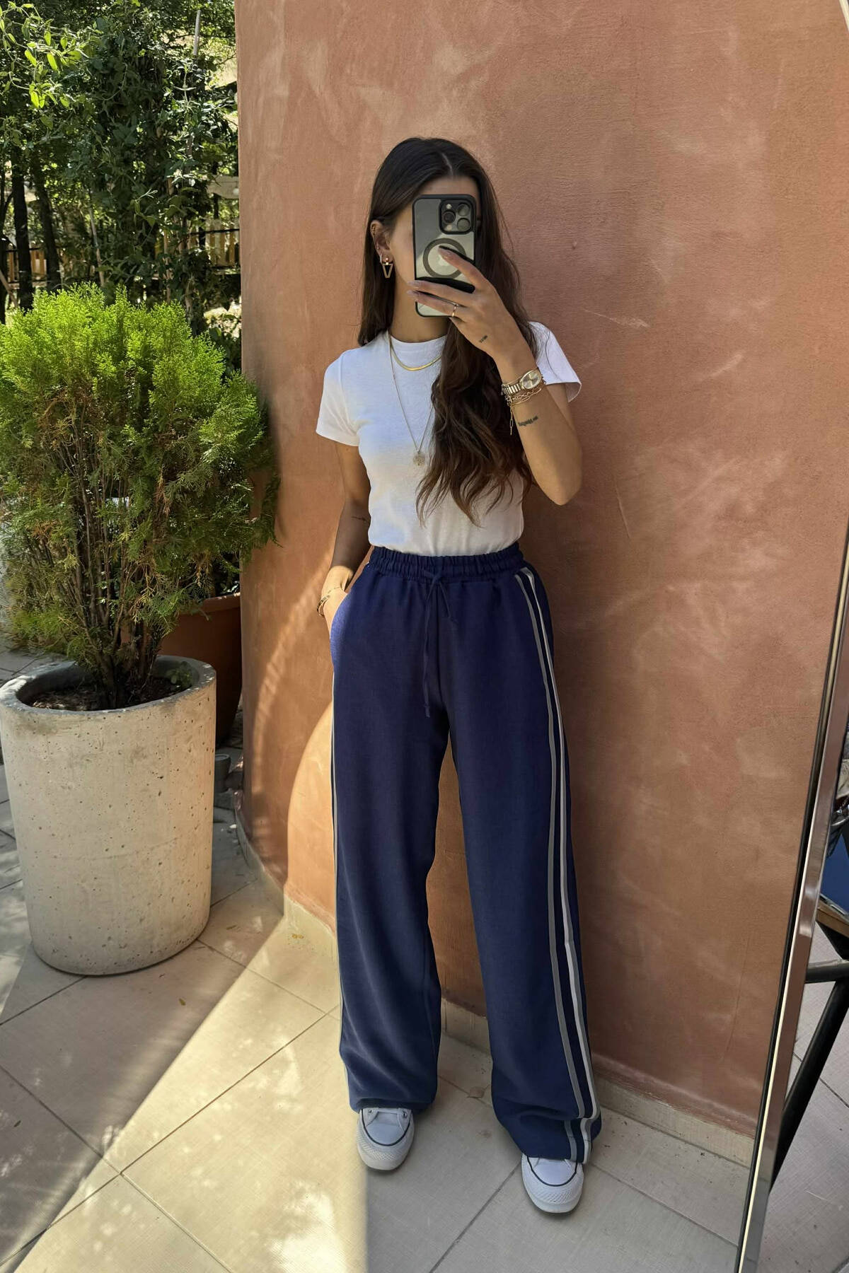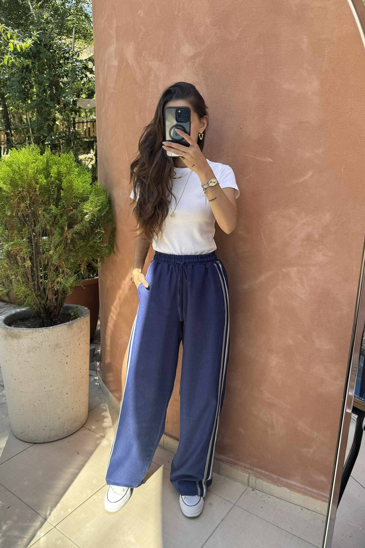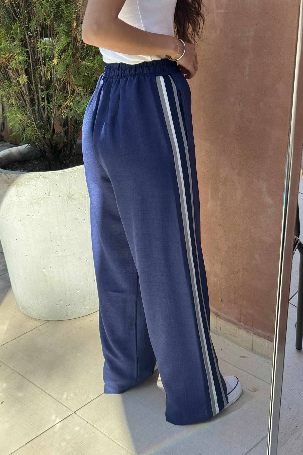 PANTALLONA TË GJERA ME VIJA ANASH PËR FEMRA NË NGJYRËN BLU