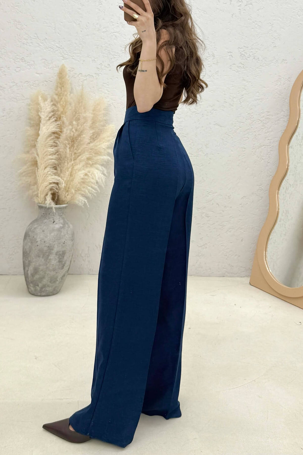 PANTALLONA TE GJERA NJE NGJYRESHE PER FEMRA NE NGJYRE BLU MESNATE