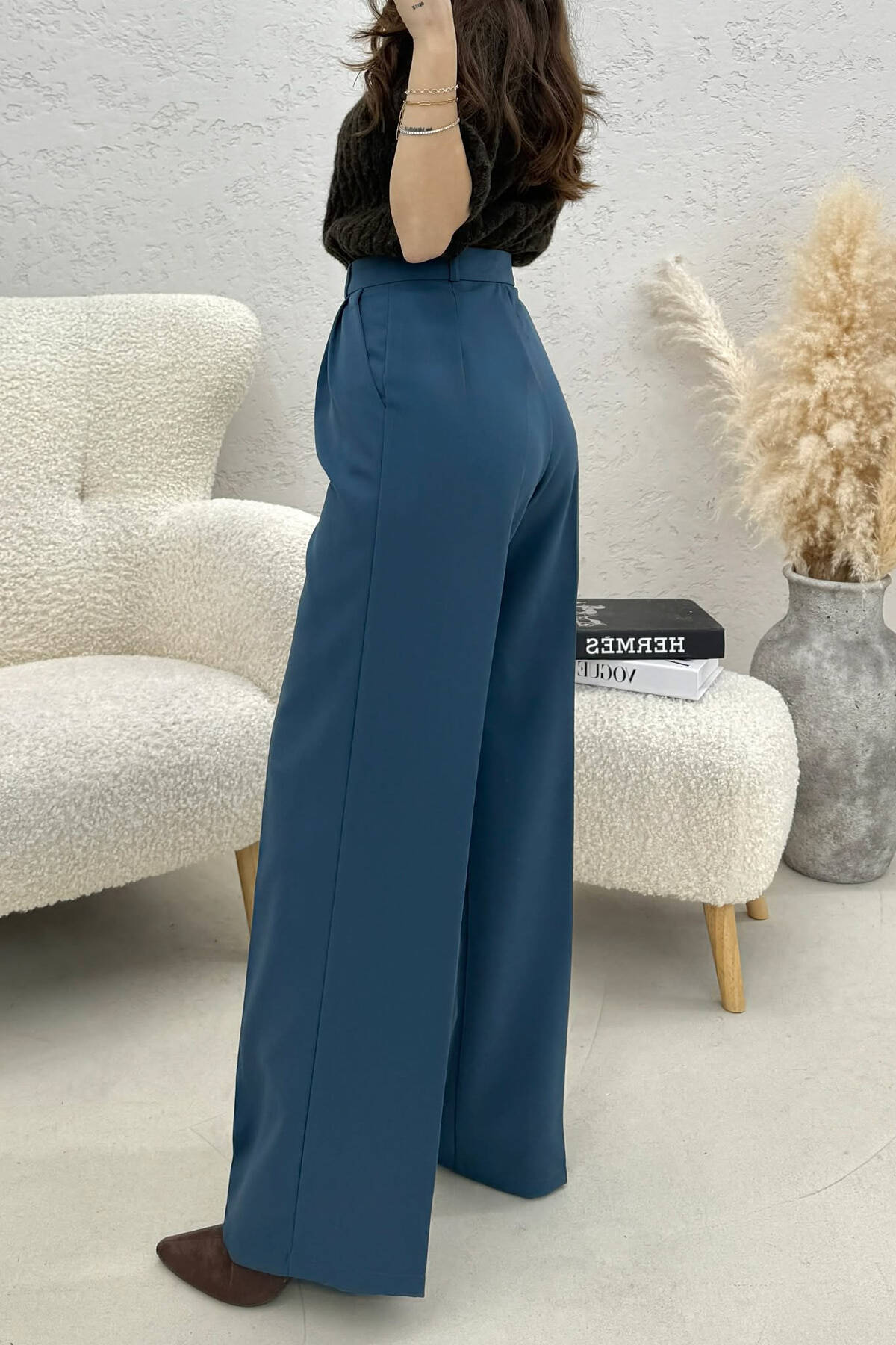 PANTALLONA TE GJERA NJE NGJYRESHE ME DETAJIN E RRIPIT PER FEMRA NE NGJYRE BLU