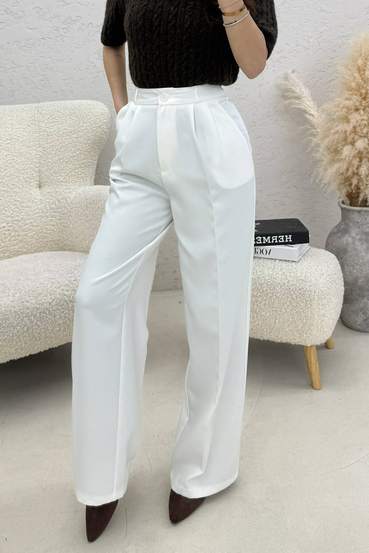 PANTALLONA TE GJERA NJE NGJYRESHE PER FEMRA NE NGJYRE TE BARDHE