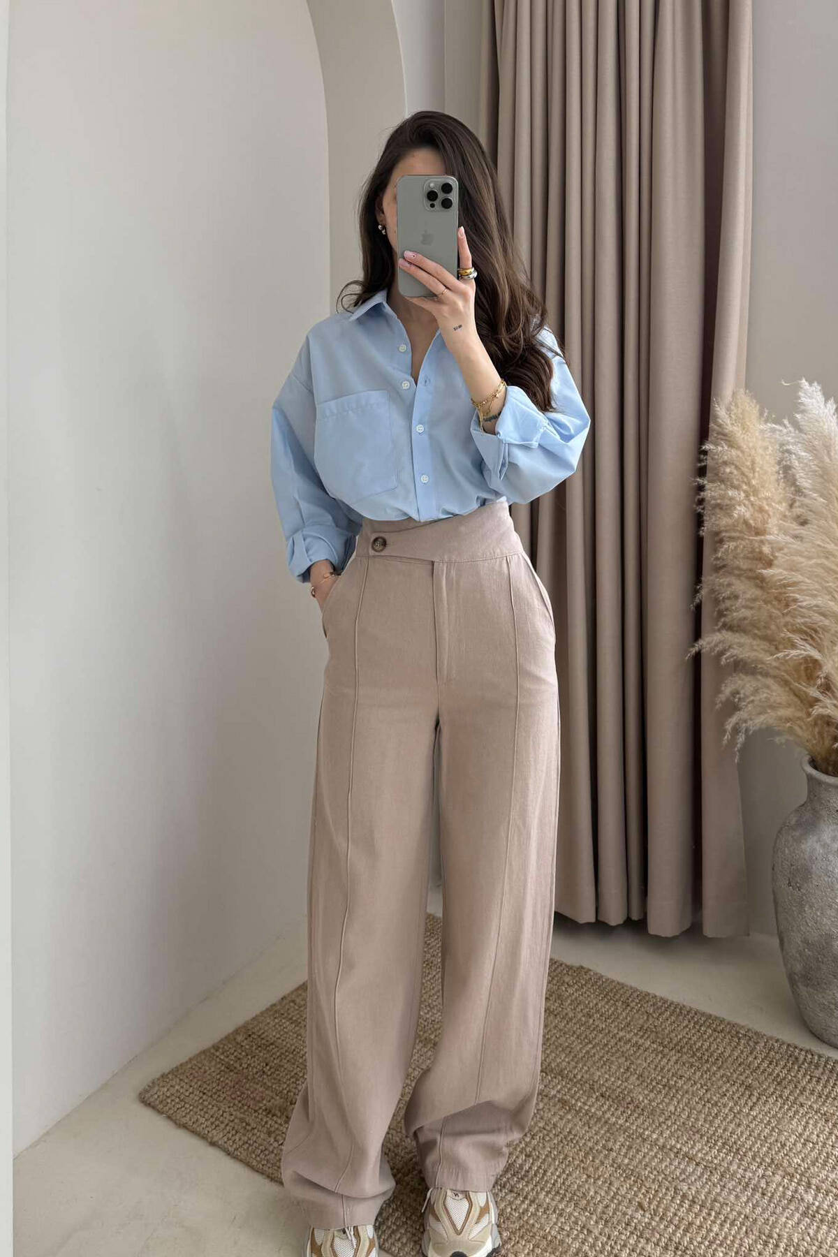 PANTALLONA TË GJERA NJË NGJYRËSHE PËR FEMRA NË NGJYRËN BEZHË