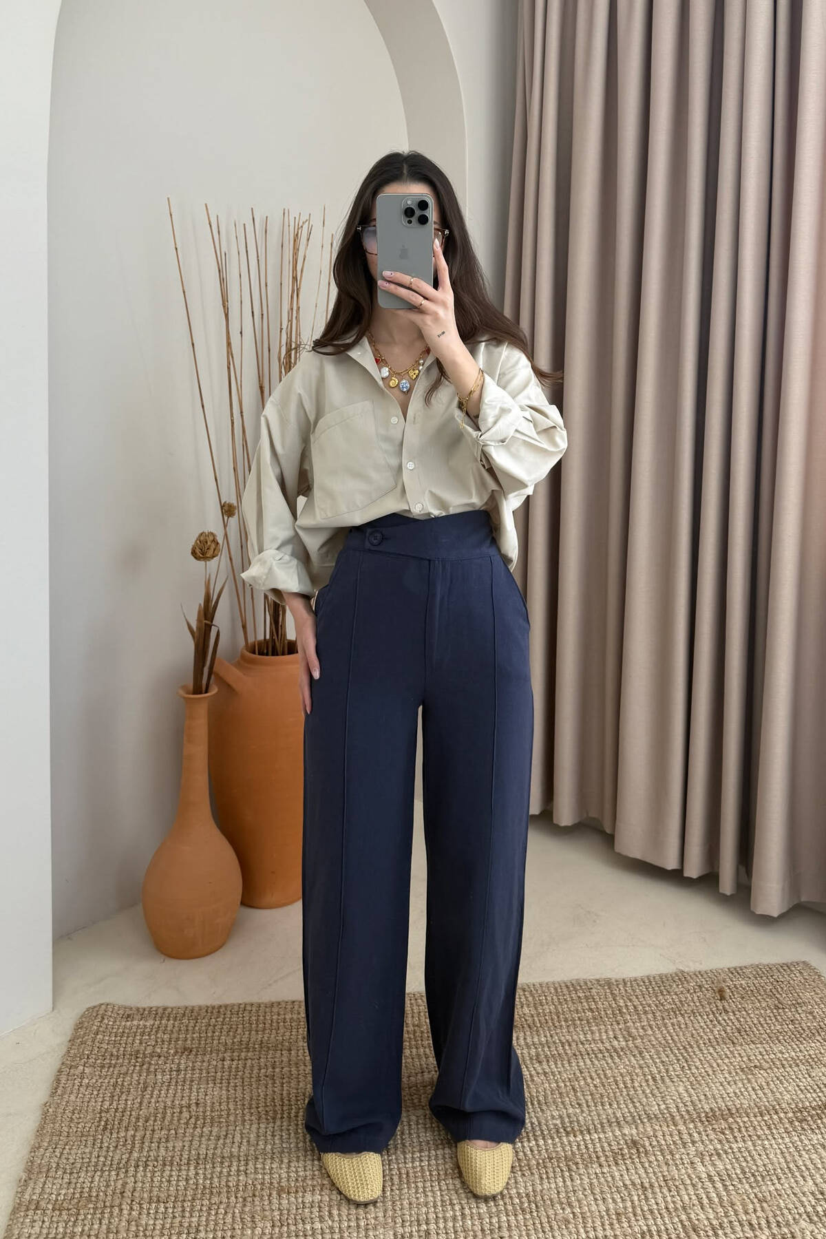PANTALLONA TË GJERA NJË NGJYRËSHE PËR FEMRA NË NGJYRËN BLU