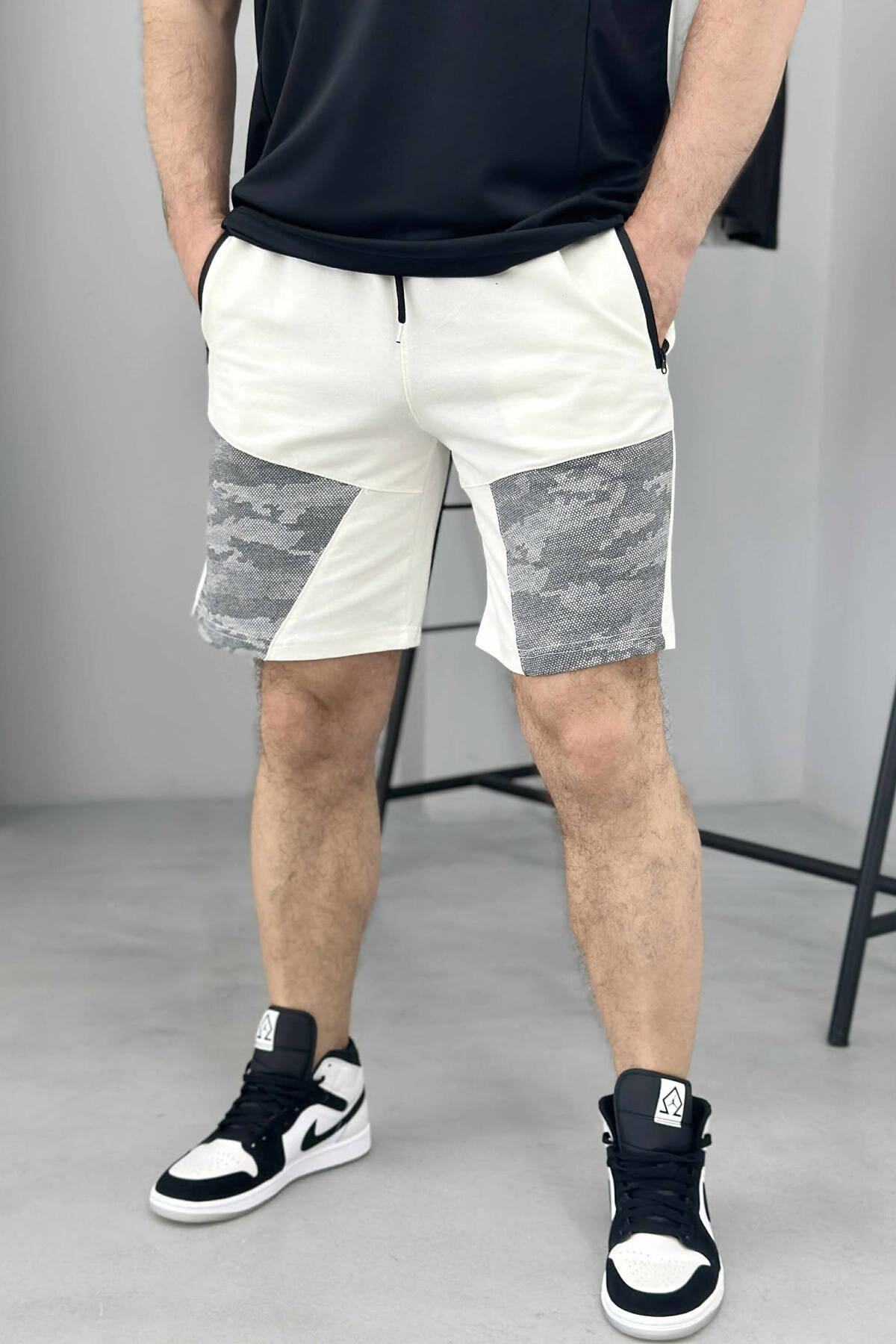 PANTALLONA TË SHKURTRA ME XHEPA PËR MESHKUJ NË NGJYRËN E BARDHË