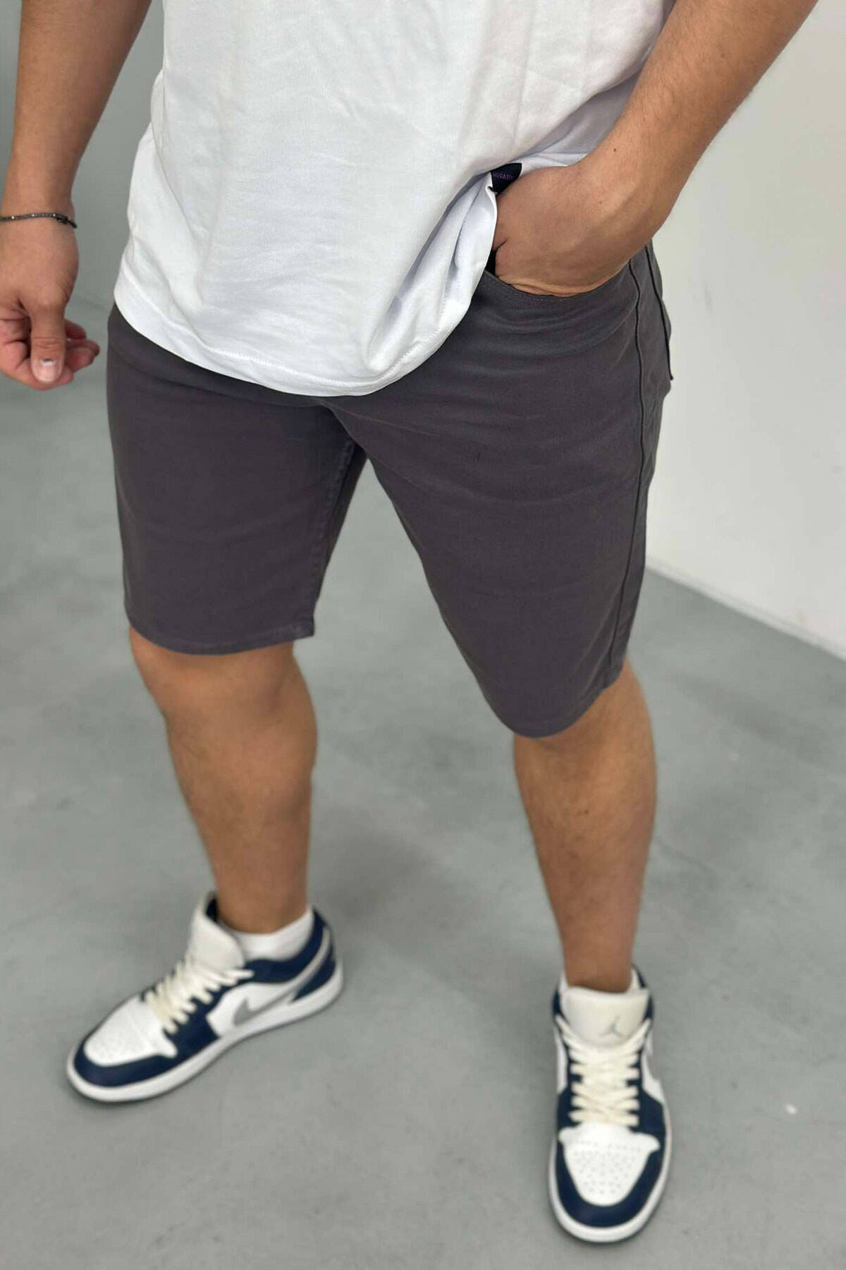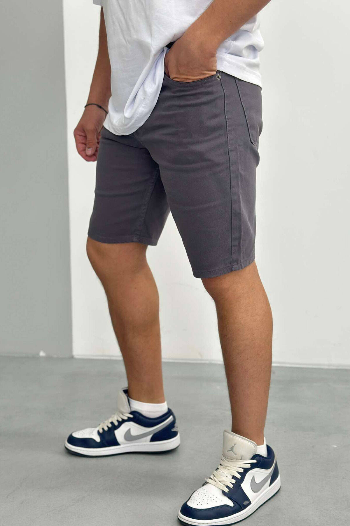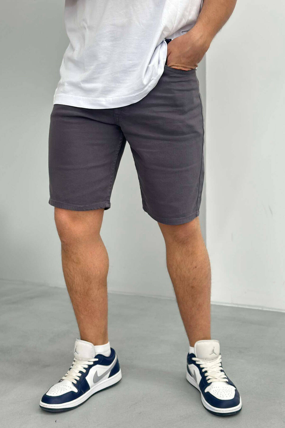 PANTALLONA TË SHKURTRA NJË NGJYRËSHE PËR MESHKUJ NË NGJYRËN GRI E ERRËT
