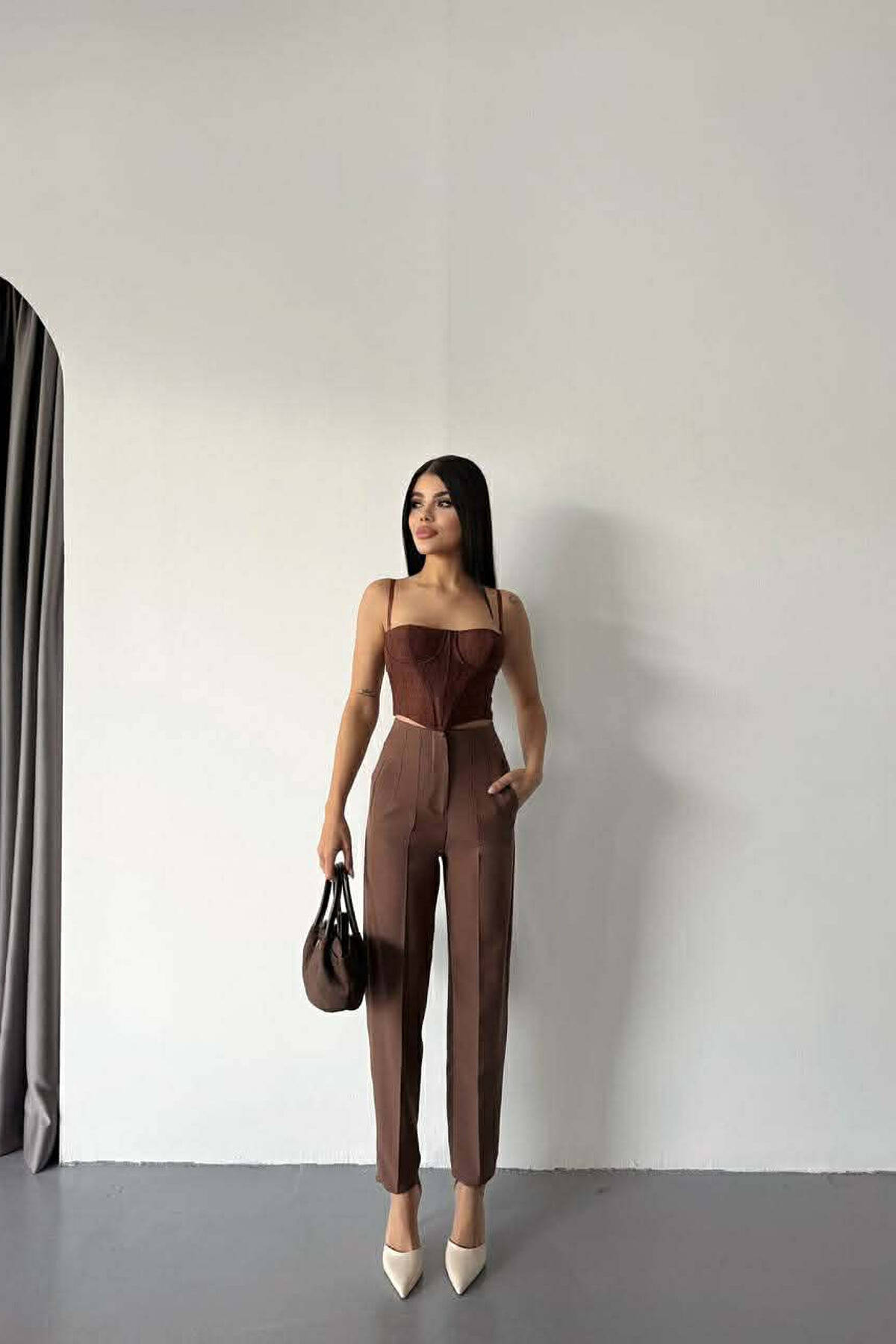 PANTALLONA TE THJESHTA KLASIKE PER FEMRA NE NGJYRE KAFE