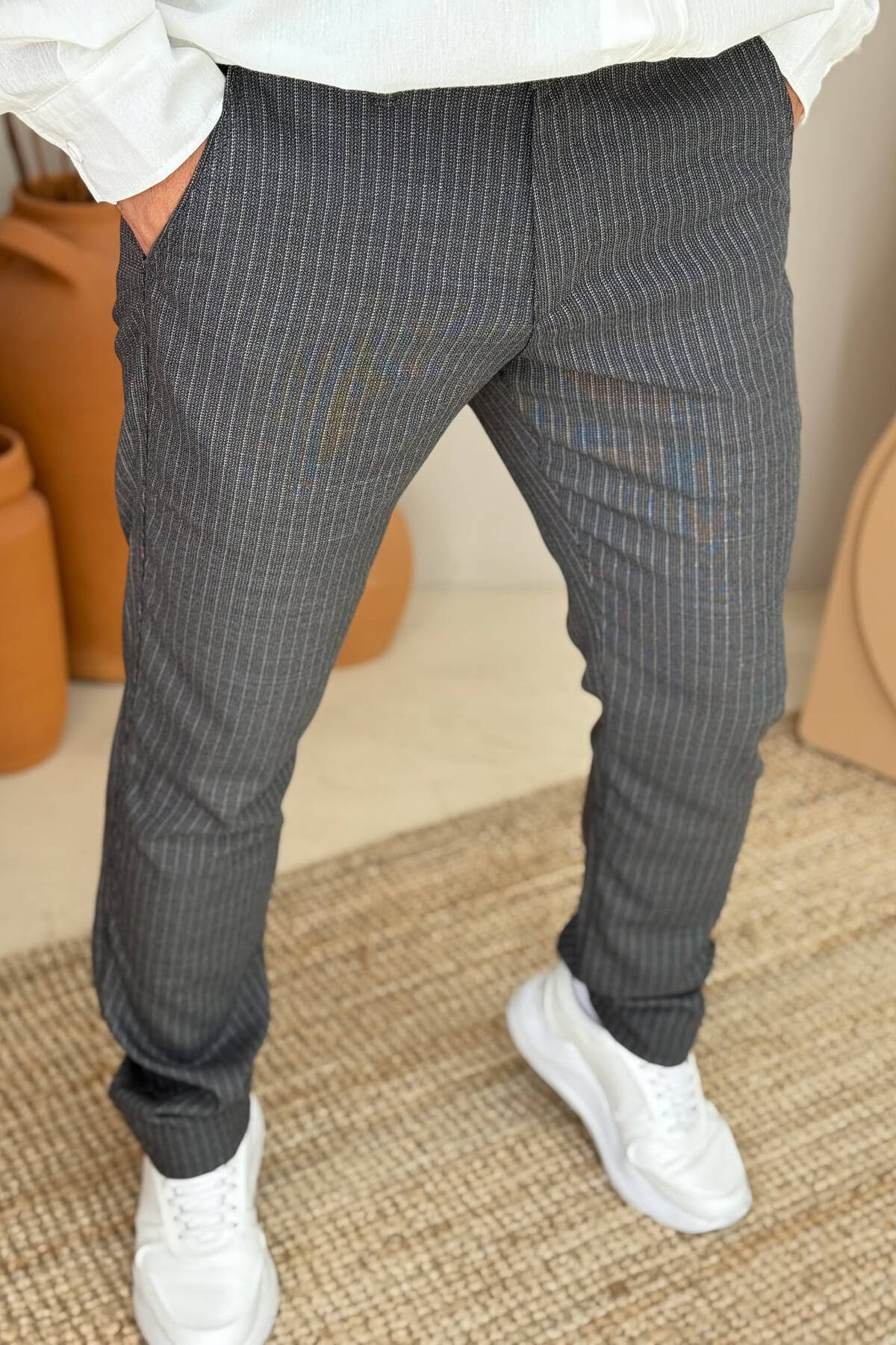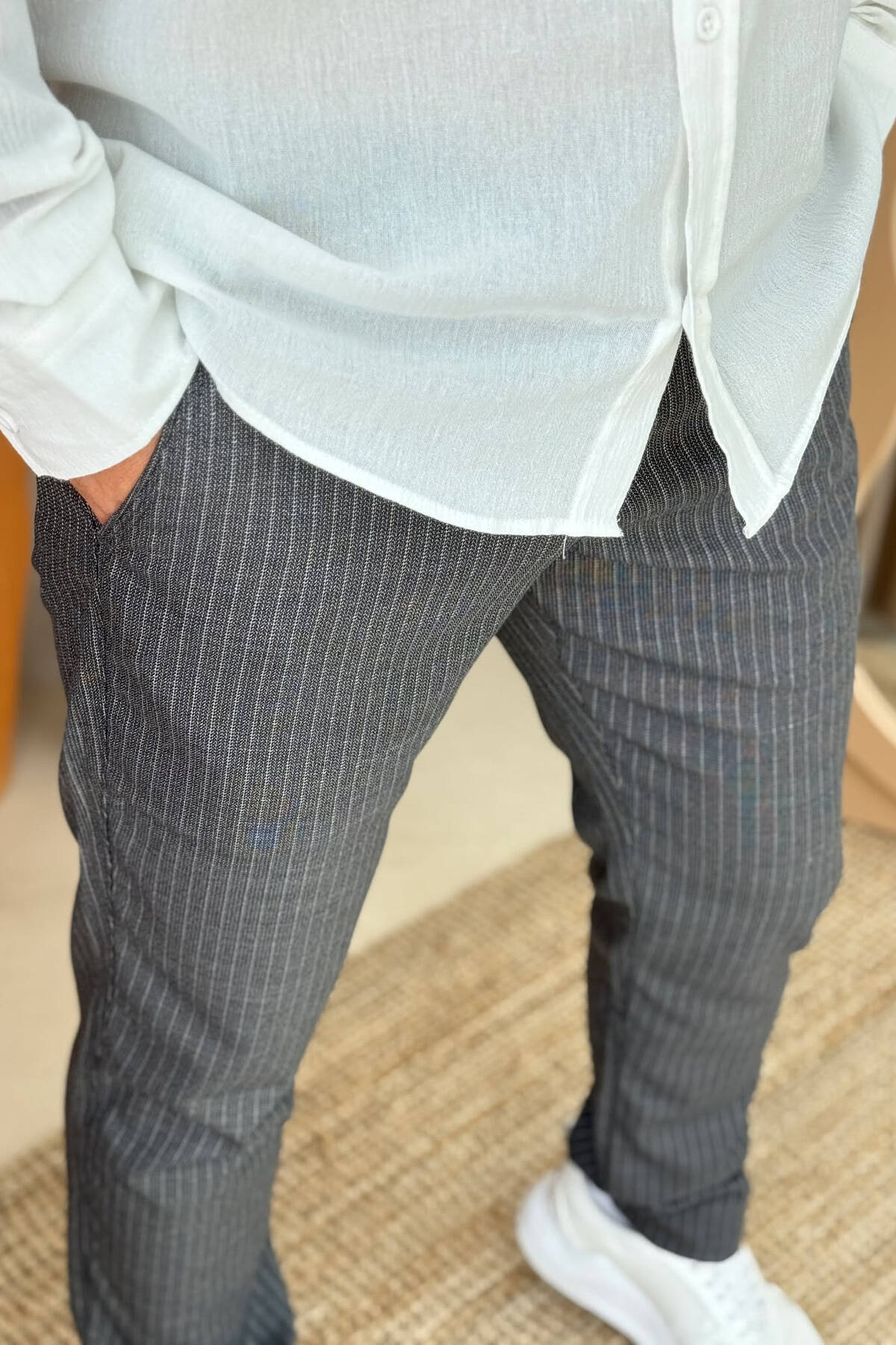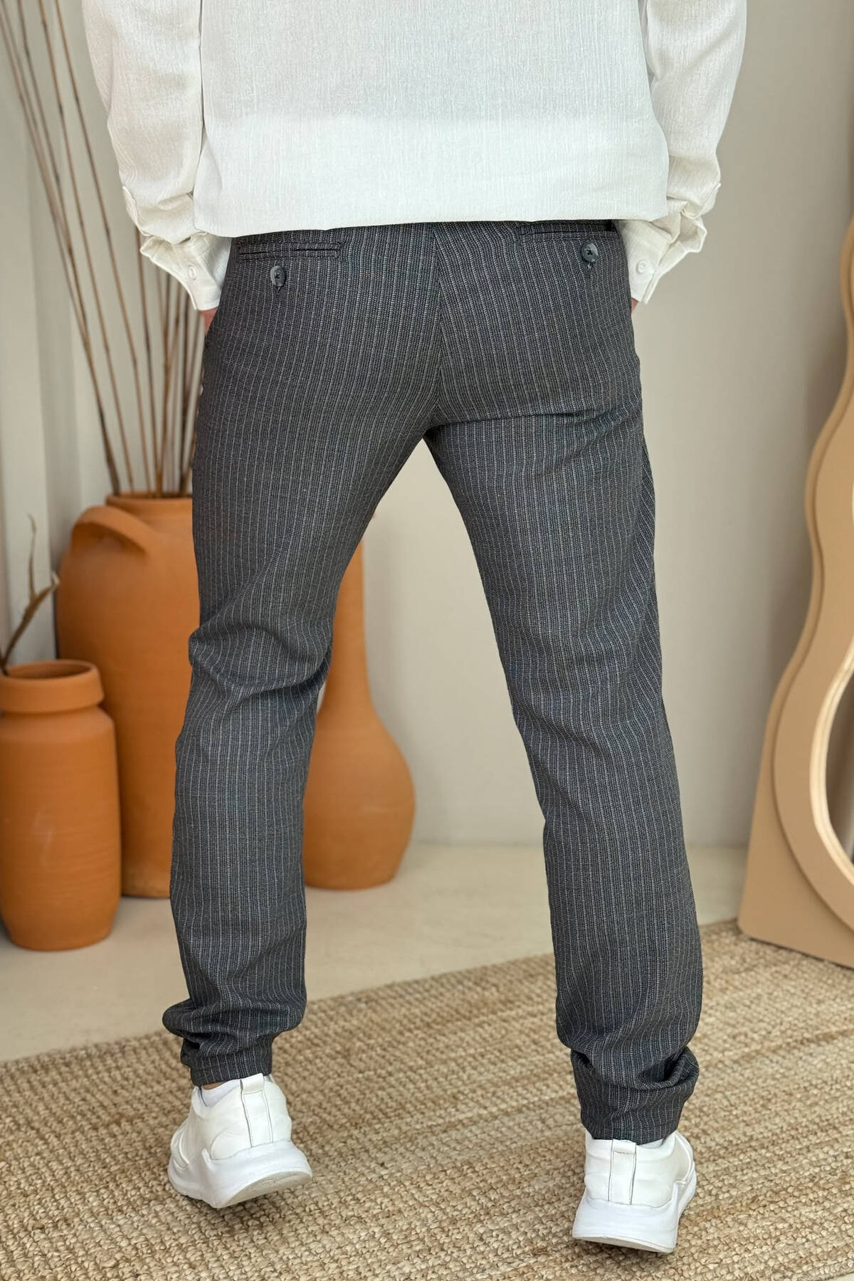 PANTALLONA TË THJESHTA ME DIZAJNIN E VIJAVE PËR MESHKUJ NË NGJYRËN GRI
