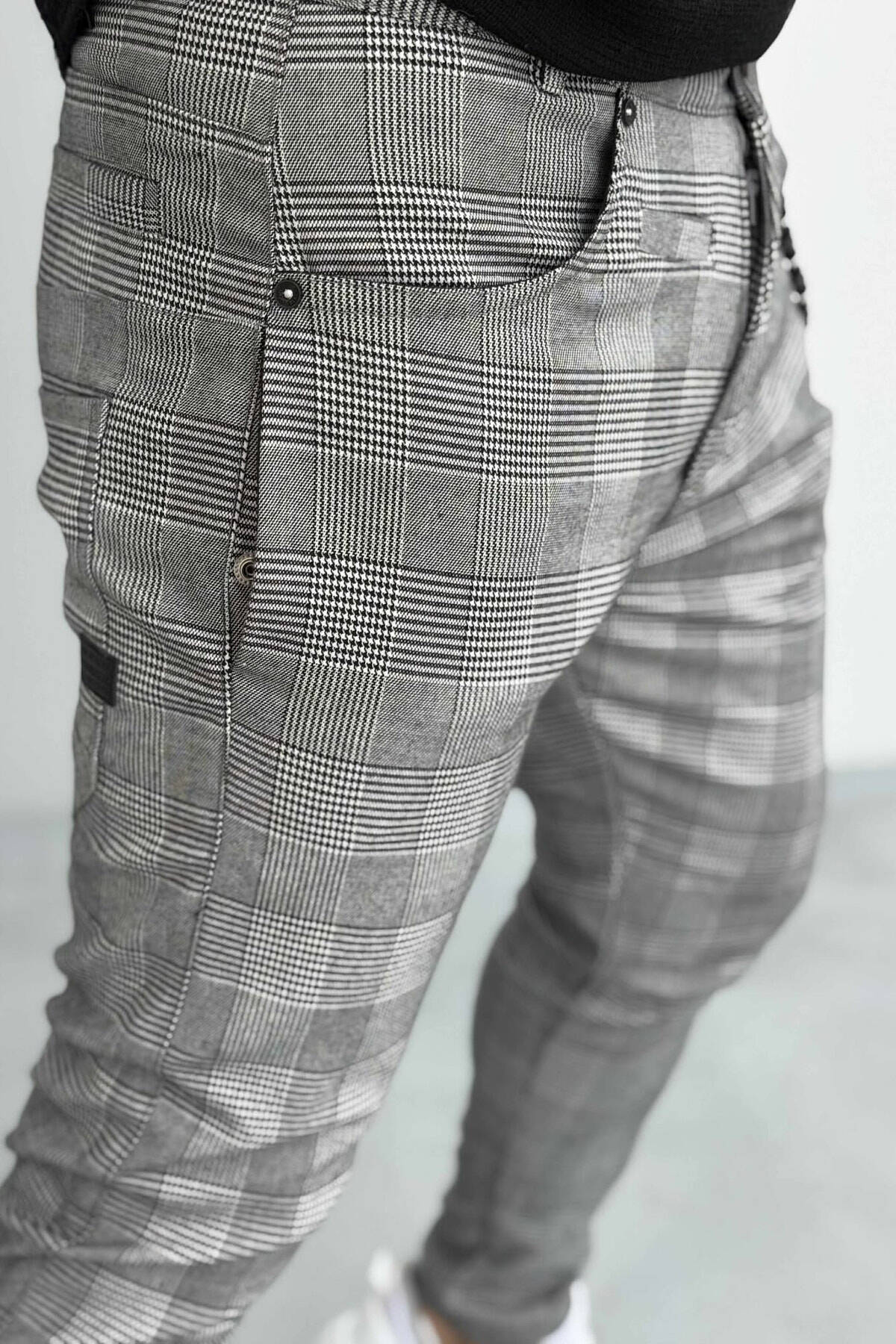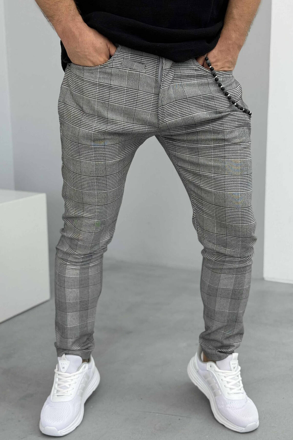 PANTALLONA TË THJESHTA ME KUADRATA PËR MESHKUJ NË NGJYRËN GRI