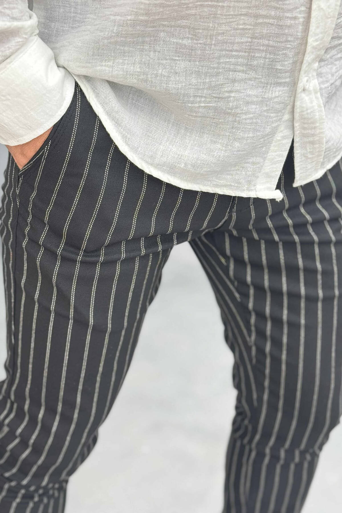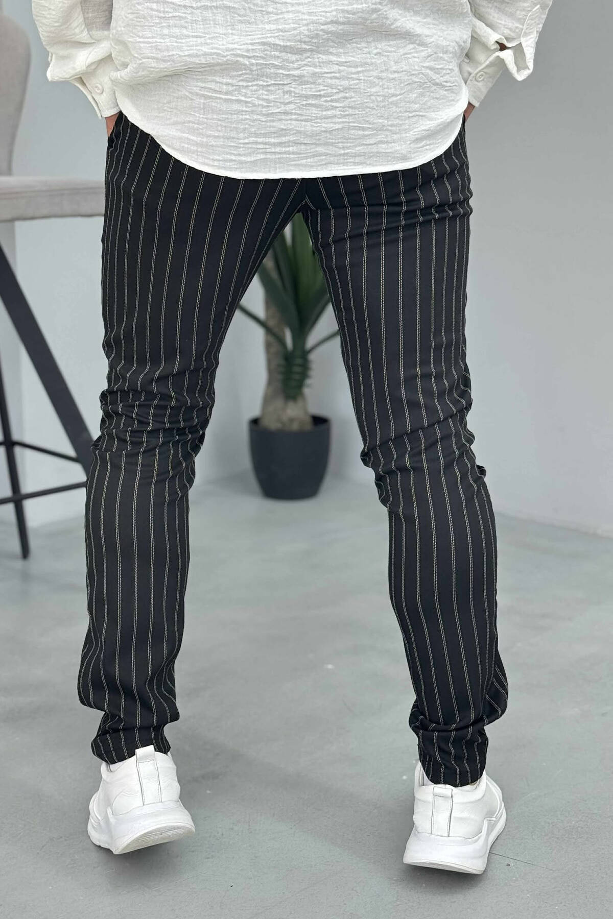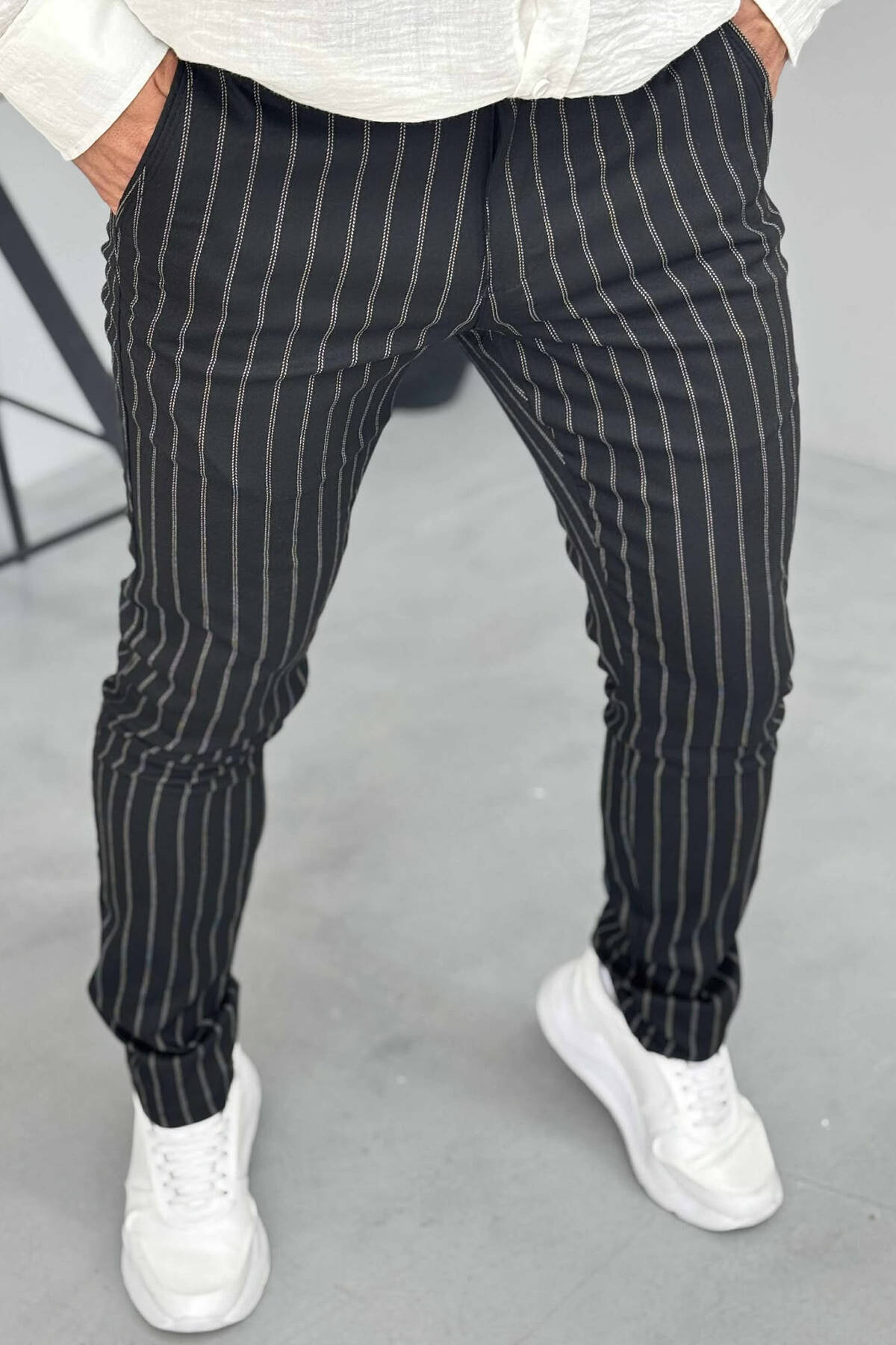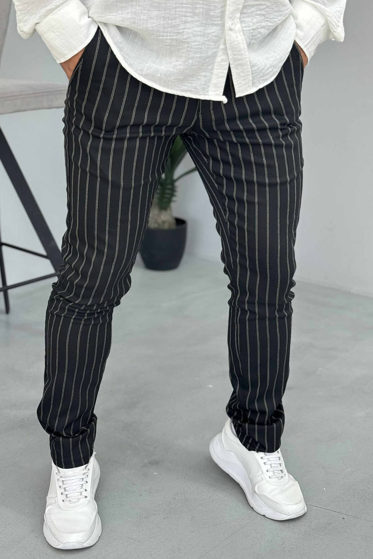 PANTALLONA TË THJESHTA ME VIJA PËR MESHKUJ NË NGJYRËN E ZEZË