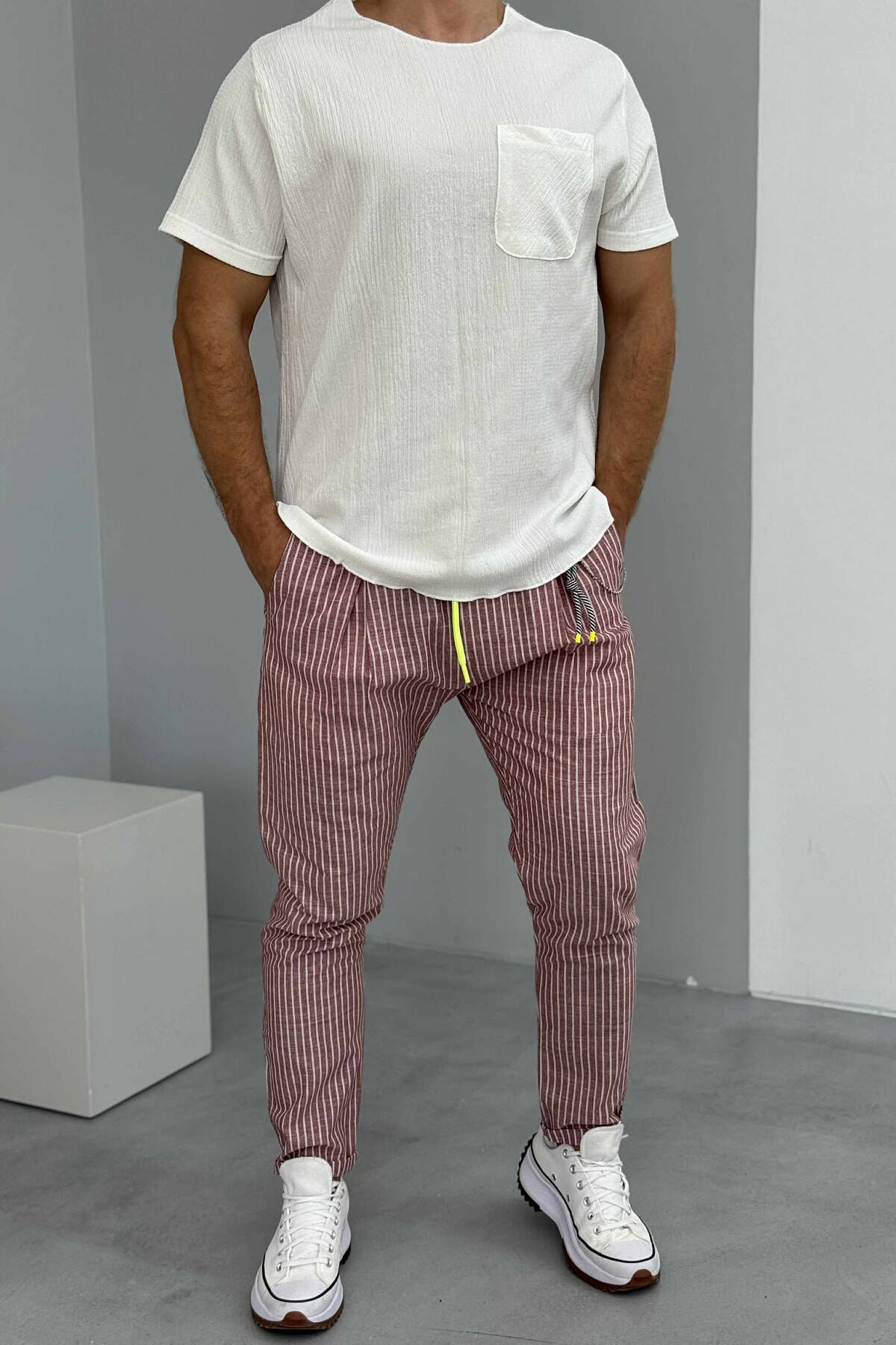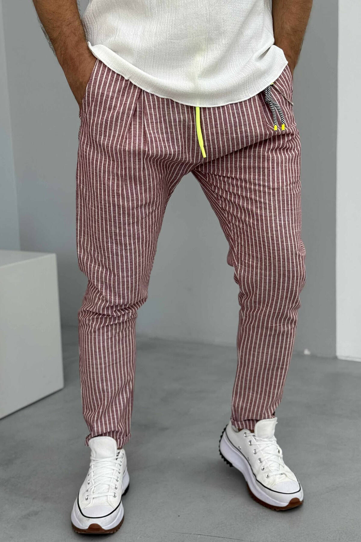 ONE COLOR SIMPLE STRIPES MEN PANTS BROWN/KAFE