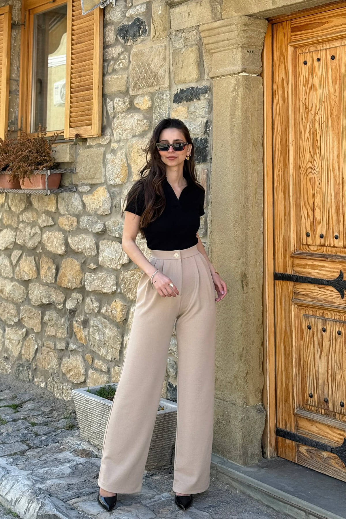 PANTALLONA ME DETAJIN E RRIPIT PER FEMRA NE NGJYRE BEZHE