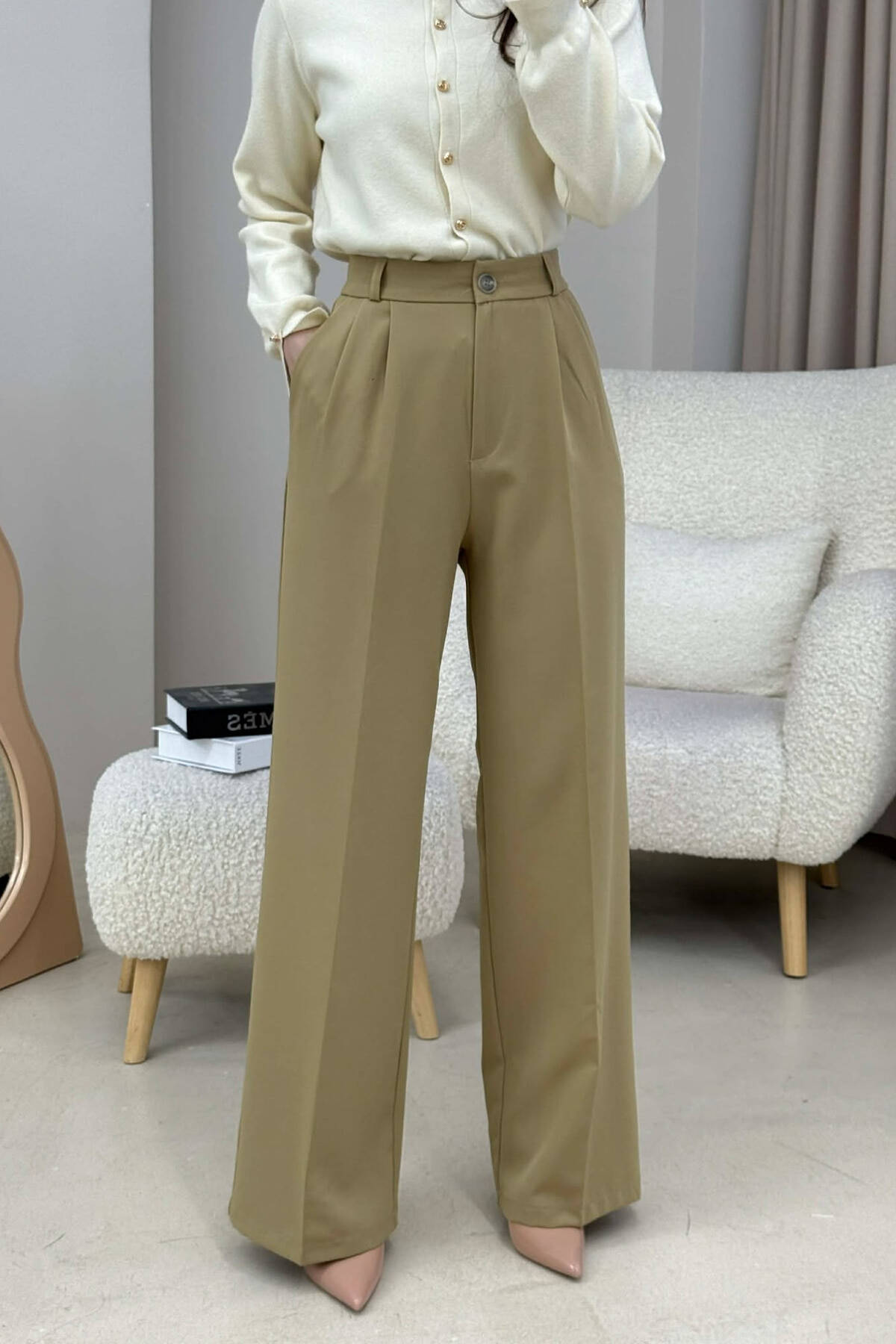 PANTALLONA TE GJERA PER FEMRA NE NGJYRE KREM