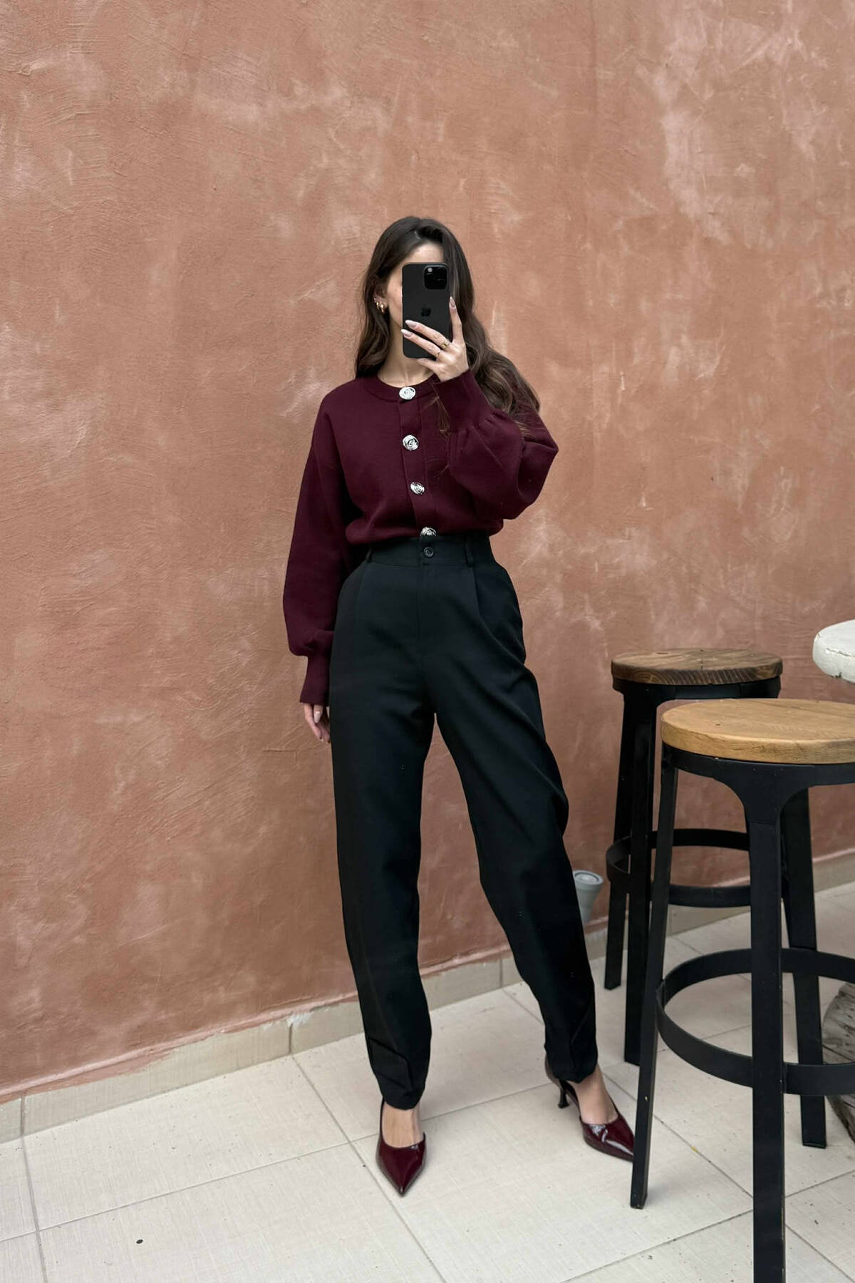 PANTALLONA TË THJESHTA NJË NGJYRËSHE PËR FEMRA NË NGJYRË VISHNJE