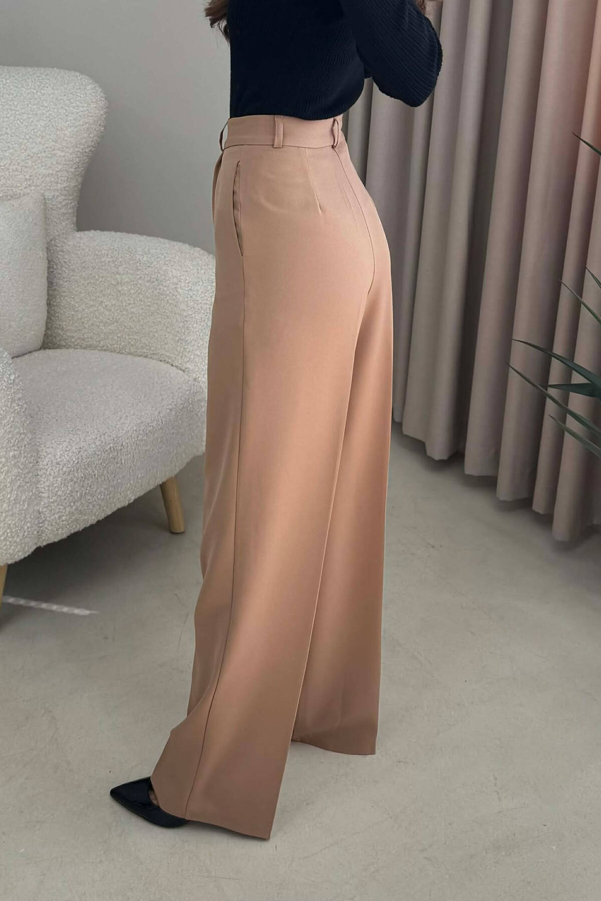 ONE COLOR LEATHER WIDE LEG WOMEN TROUSERS BEIGE/BEZHE