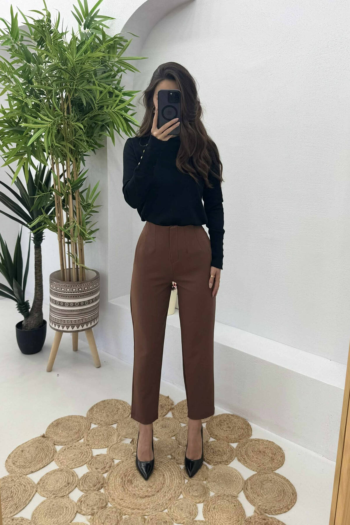 PANTALLONA TË THJESHTA NJË NGJYRËSHE PËR FEMRA NË NGJYRËN KAFE