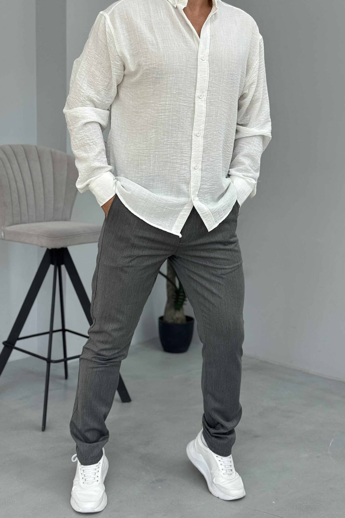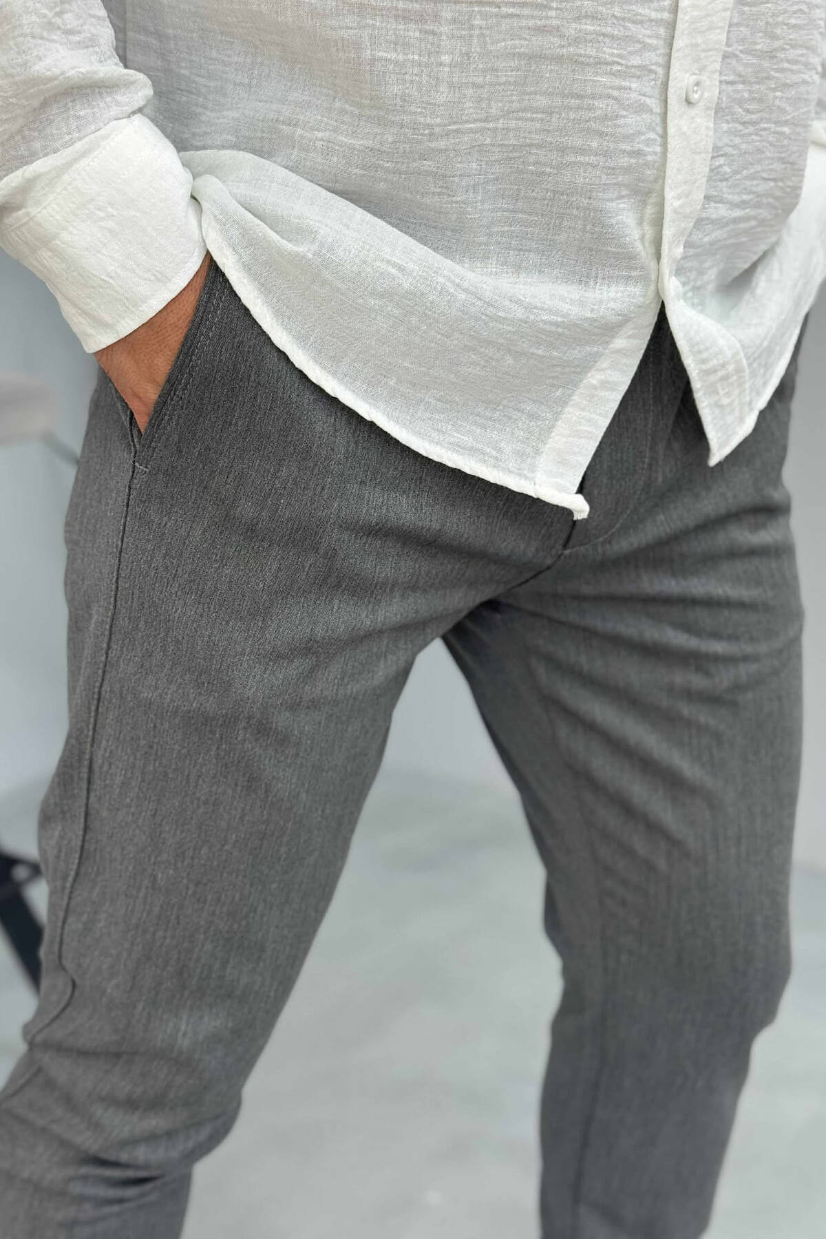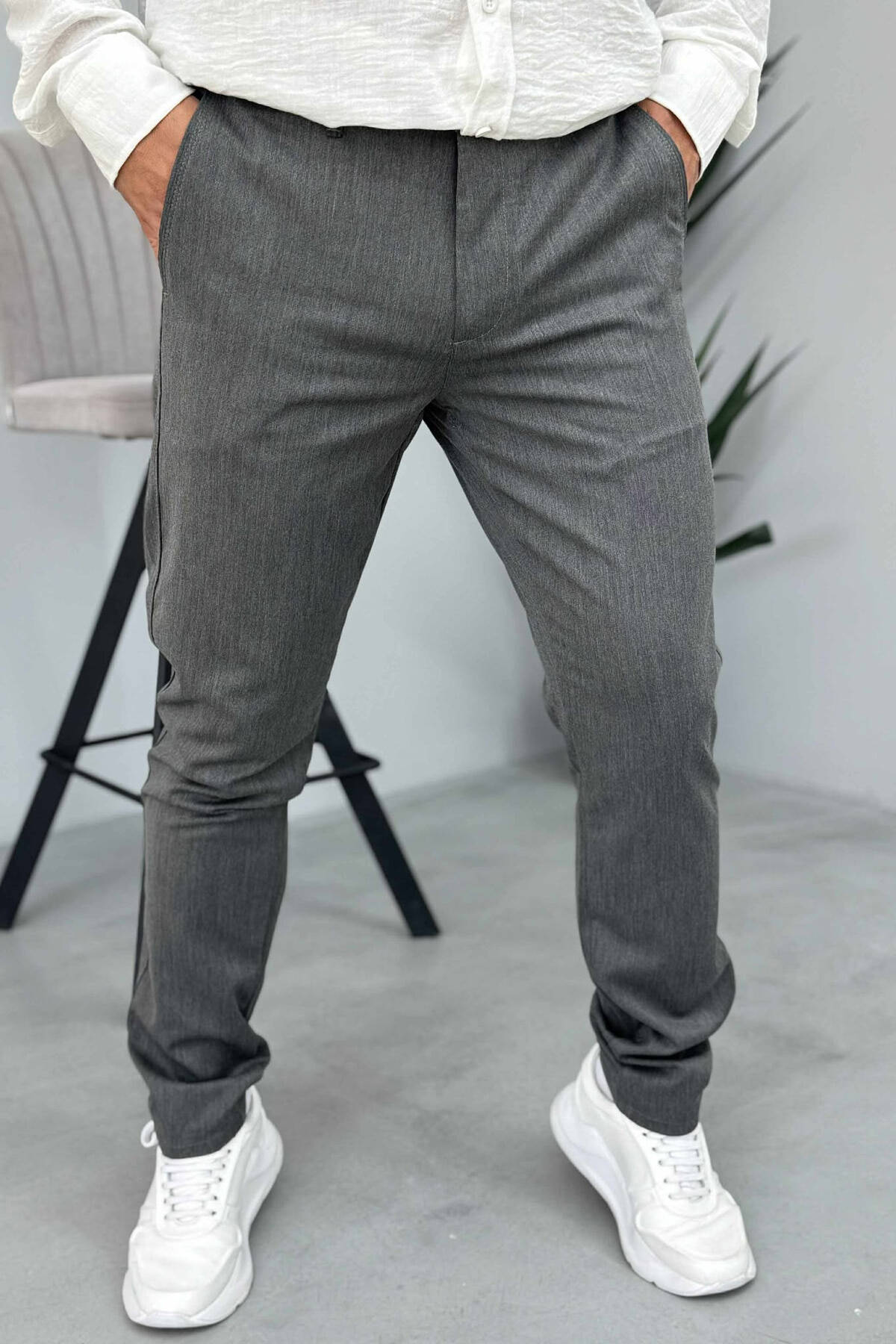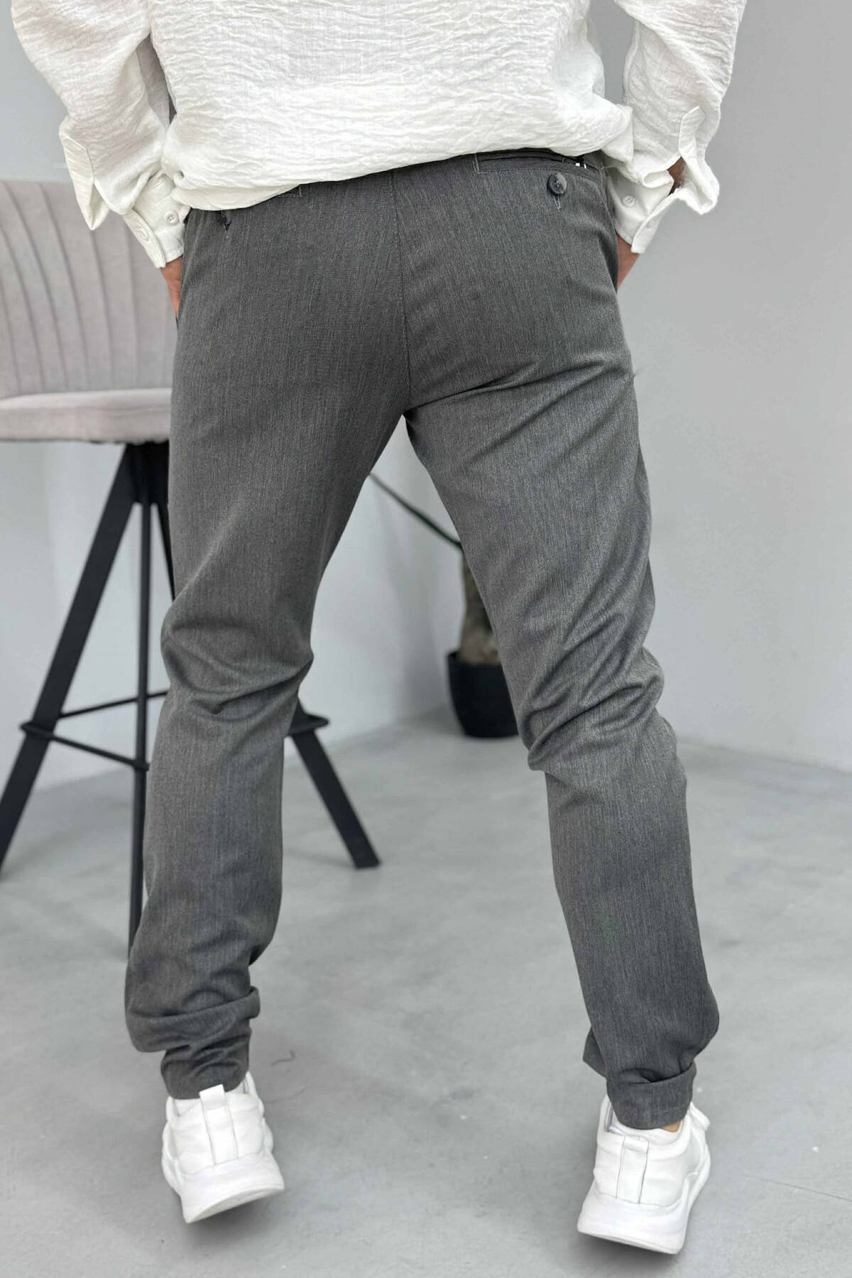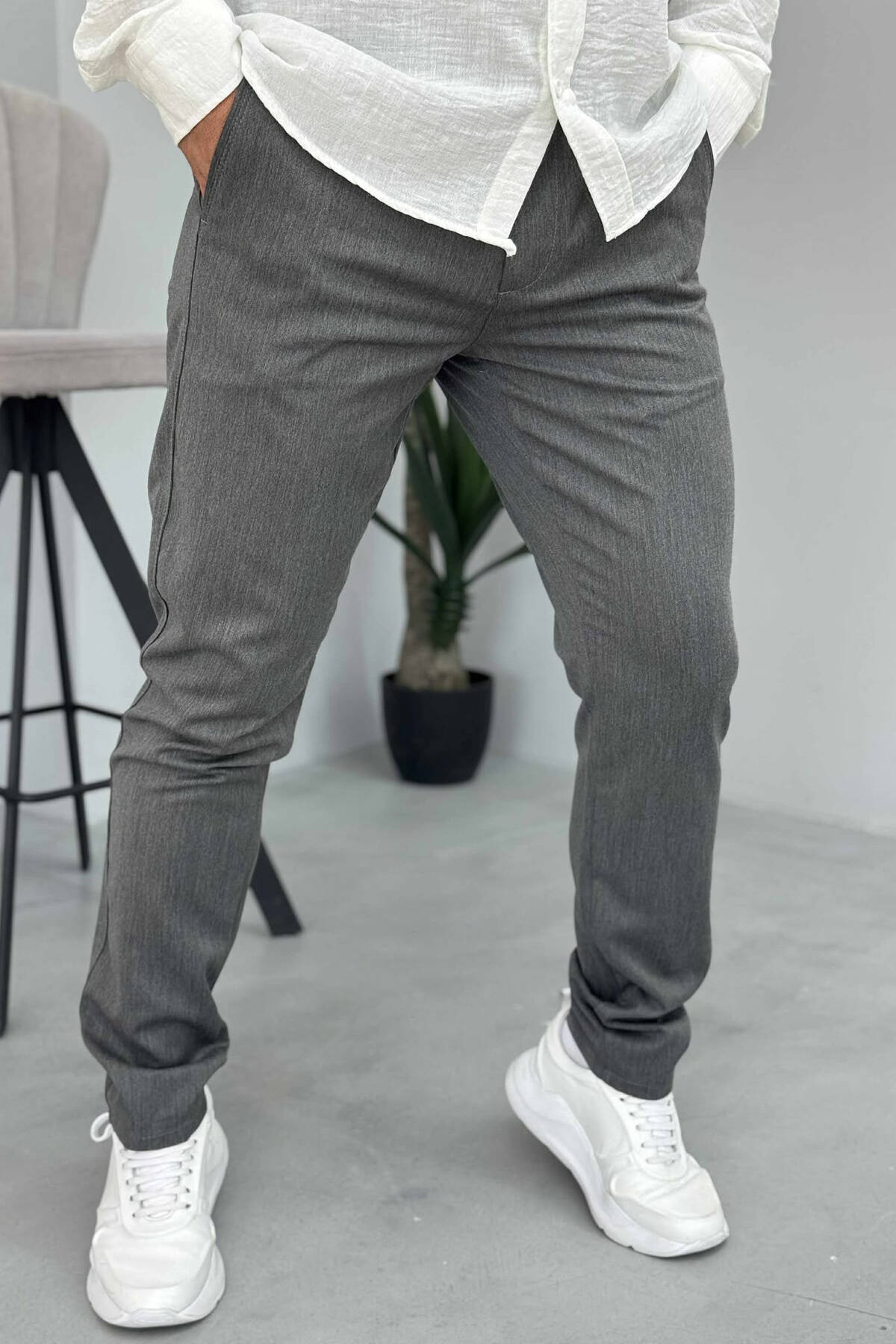 PANTALLONA NJË NGJYRËSHE TË THJESHTA PËR MESHKUJ NË NGJYRËN GRI