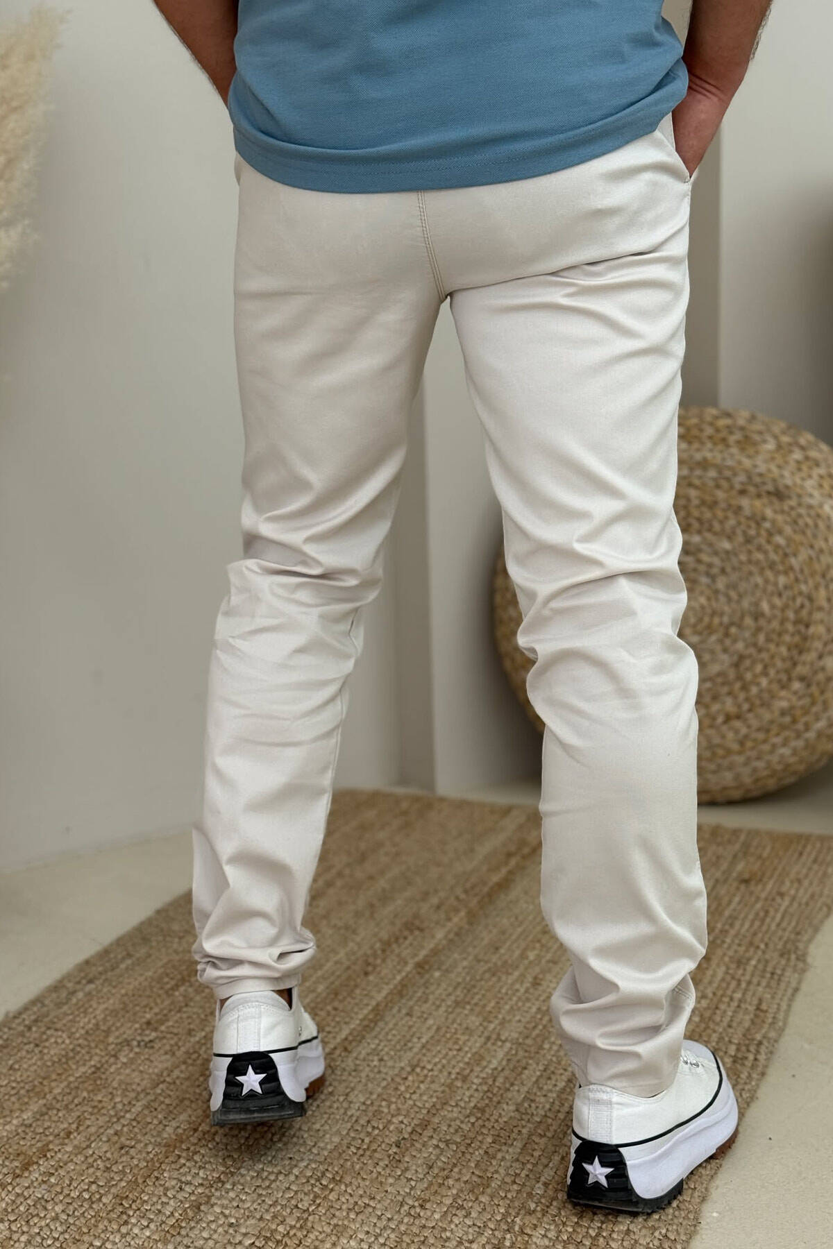 PANTALLONA NJË NGJYRËSHE TË THJESHTA PËR MESHKUJ NË NGJYRËN KREM