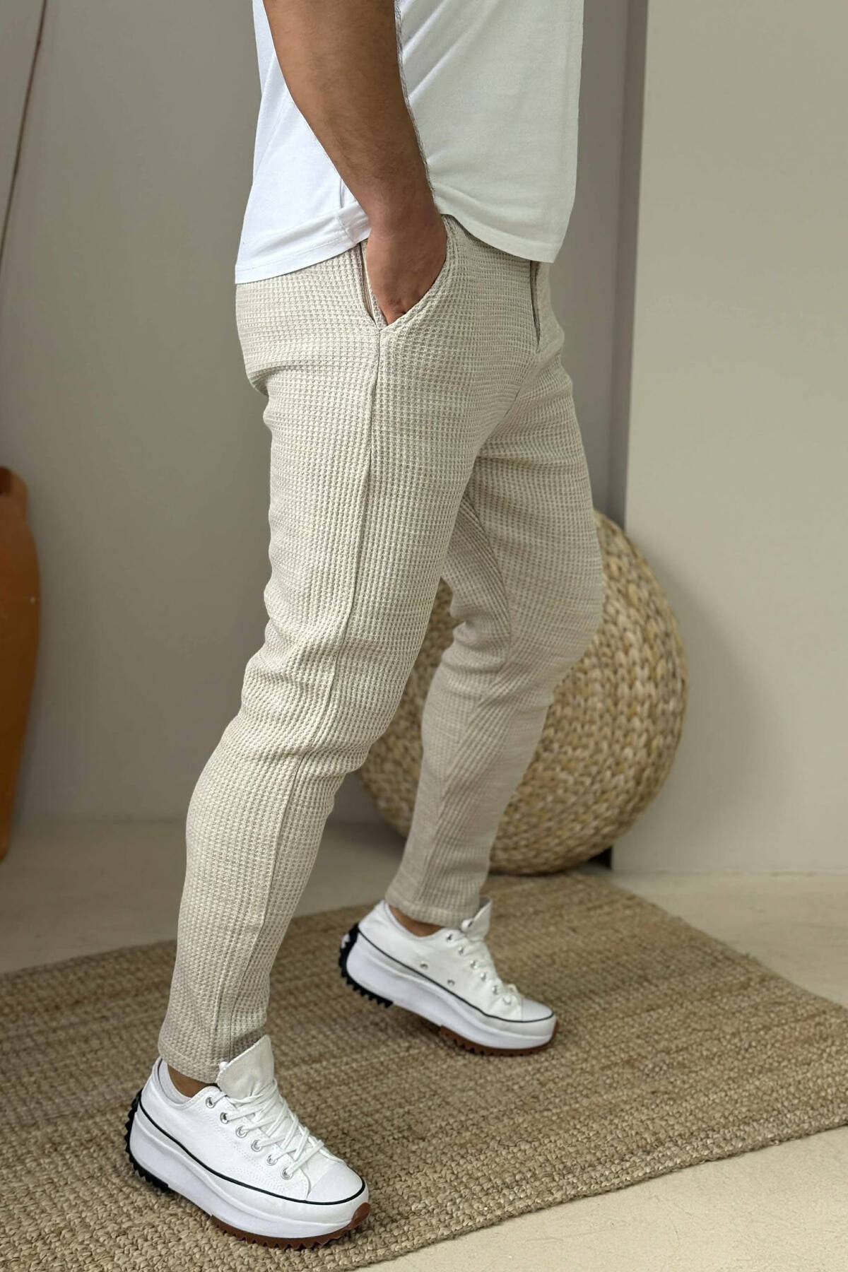 PANTALLONA ME LIDHËSE DHE ME DETAJIN E XHEPAVE PËR MESHKUJ NË NGJYRËN BEZHË TË ZBARDHUR