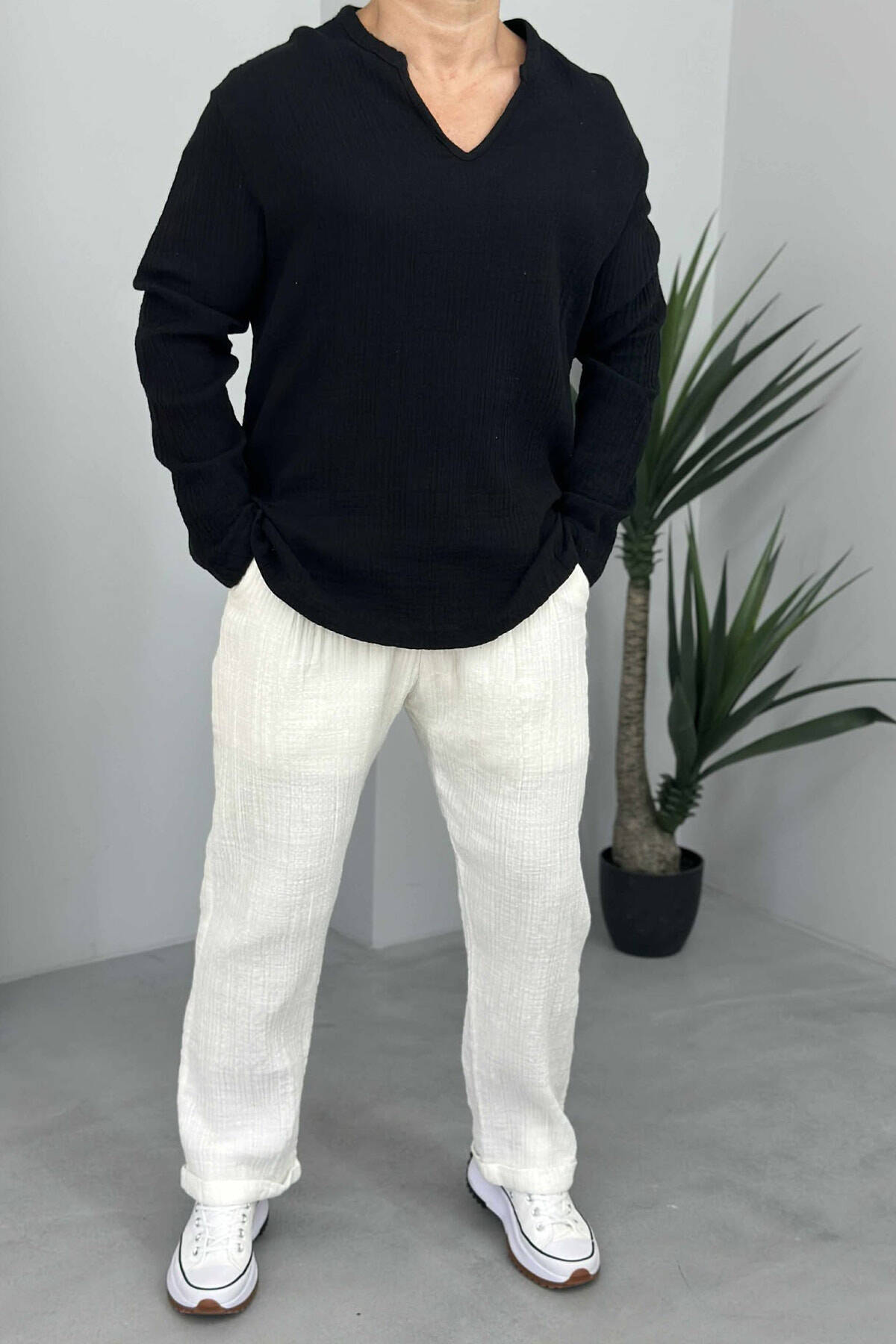 PANTALLONA TË THJESHTA NJËNGJYRËSHE PËR MESHKUJ NË NGJYRËN E BARDHË