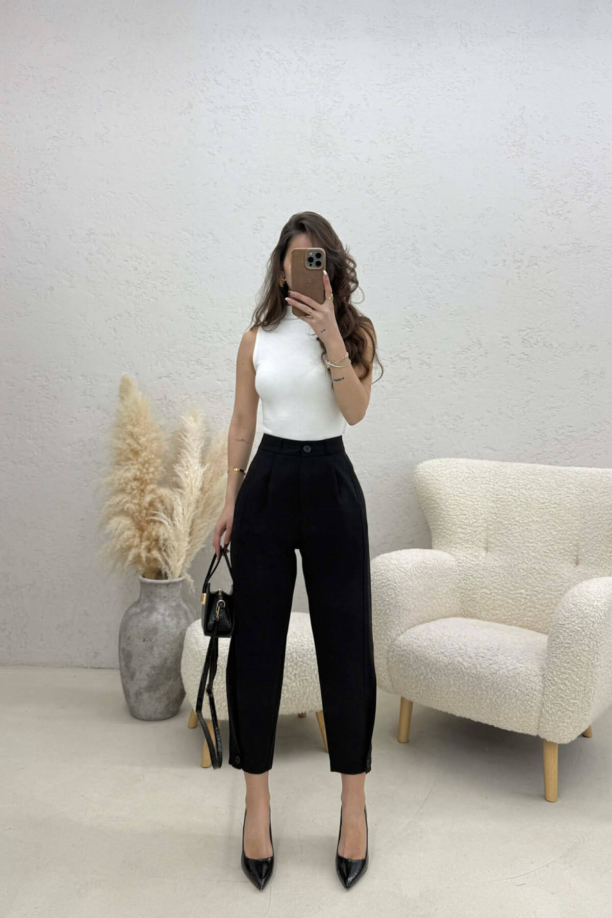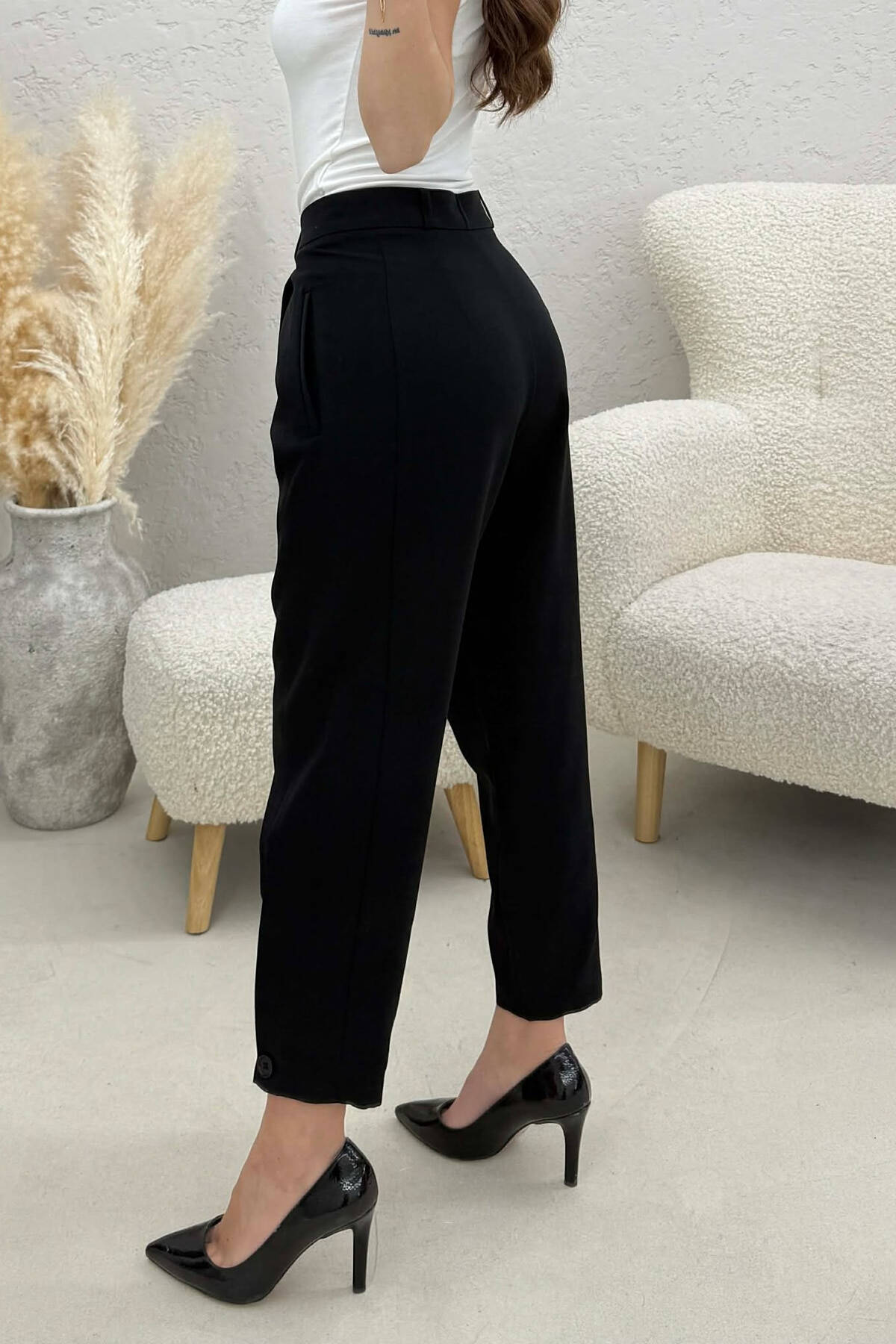 ONE COLOR BELT DETAIL WOMEN TROUSERS BLACK/ E ZEZE