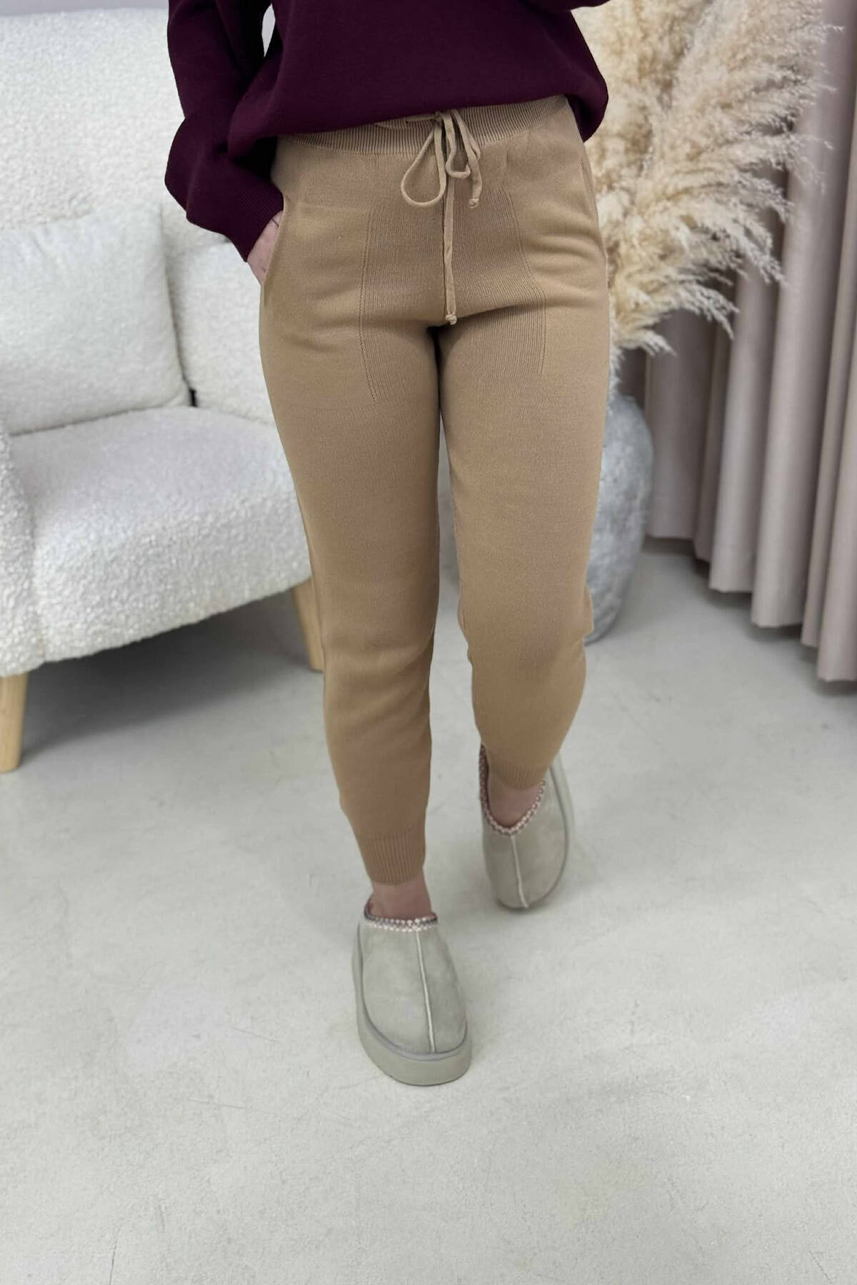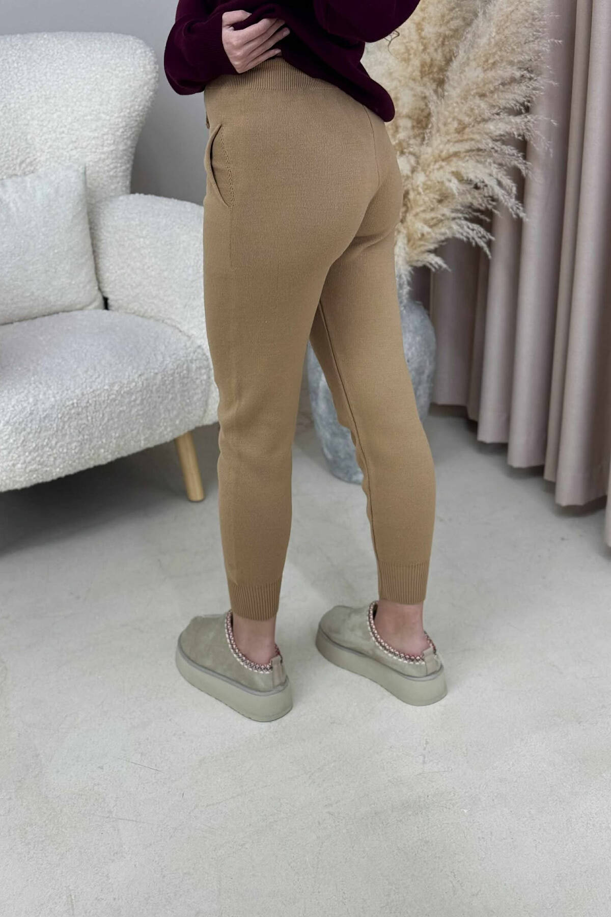 PANTALLONA NJË NGJYRËSHE ME BEL ELASTIK PËR FEMRA NË NGJYRË BEZHË
