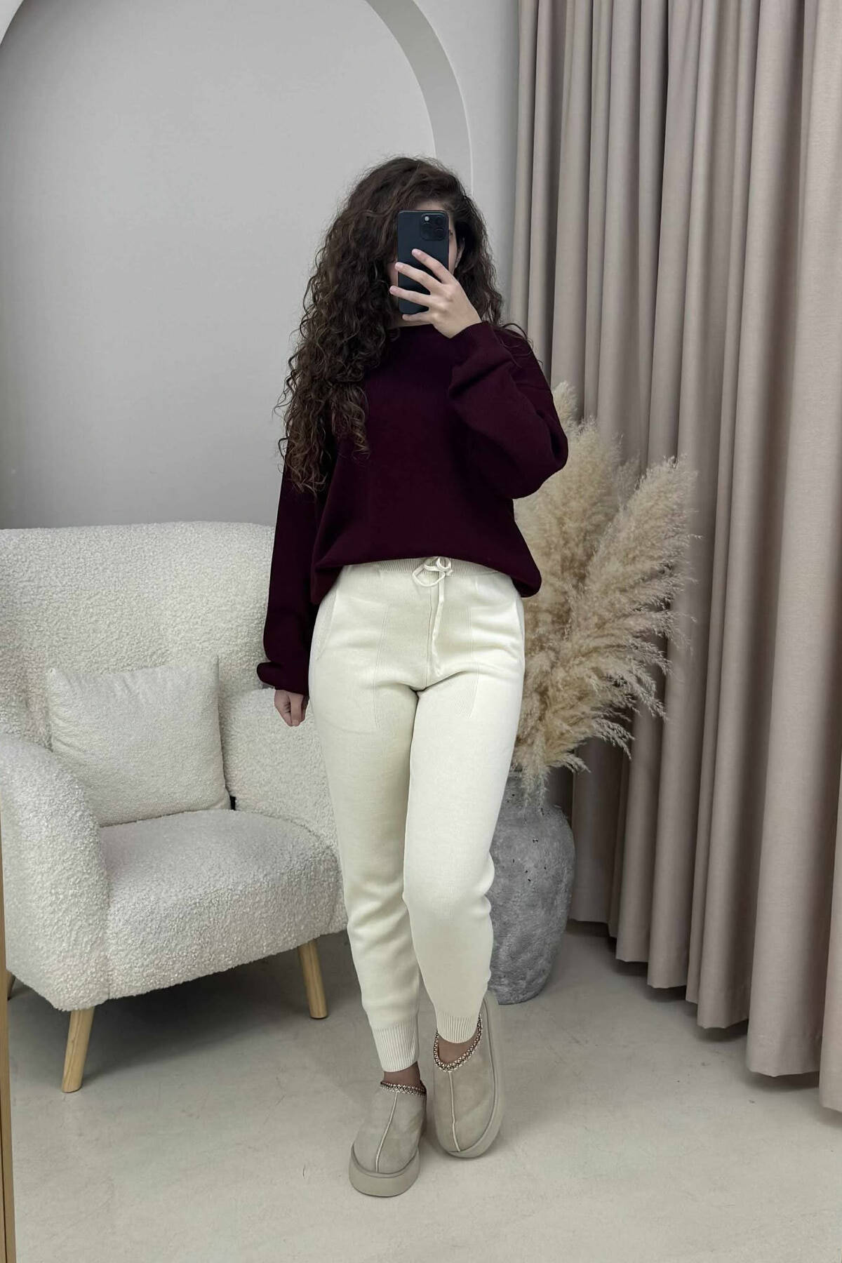 PANTALLONA TE GJERA NJE NGJYRESHE ME BEL GJYSEM ELASTIK PER FEMRA NE NGJYRE VISHNJE