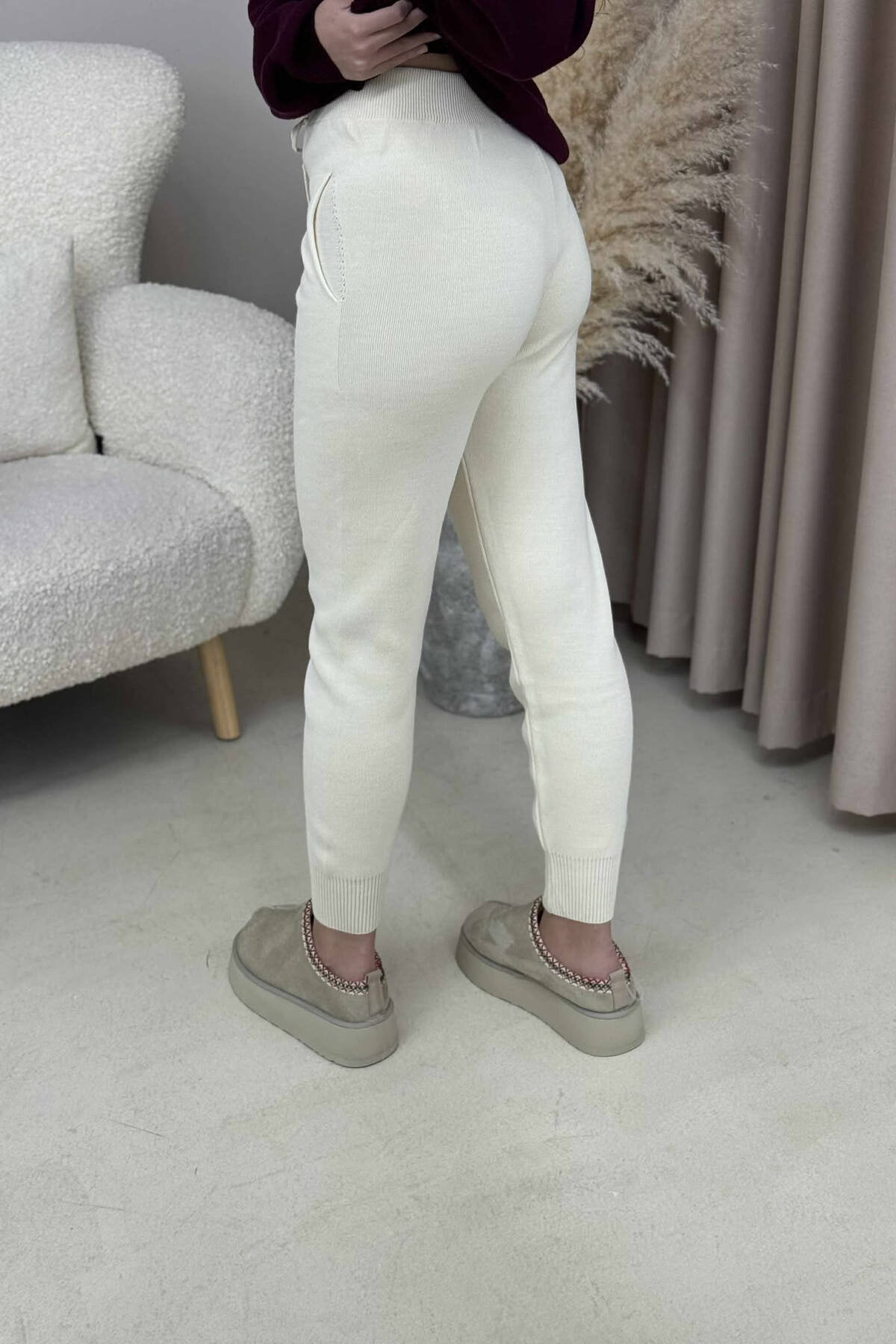 PANTALLONA TË THURRURA NJË NGJYRËSHE ME LIDHËSE PËR FEMRA NË NGJYRË KREM