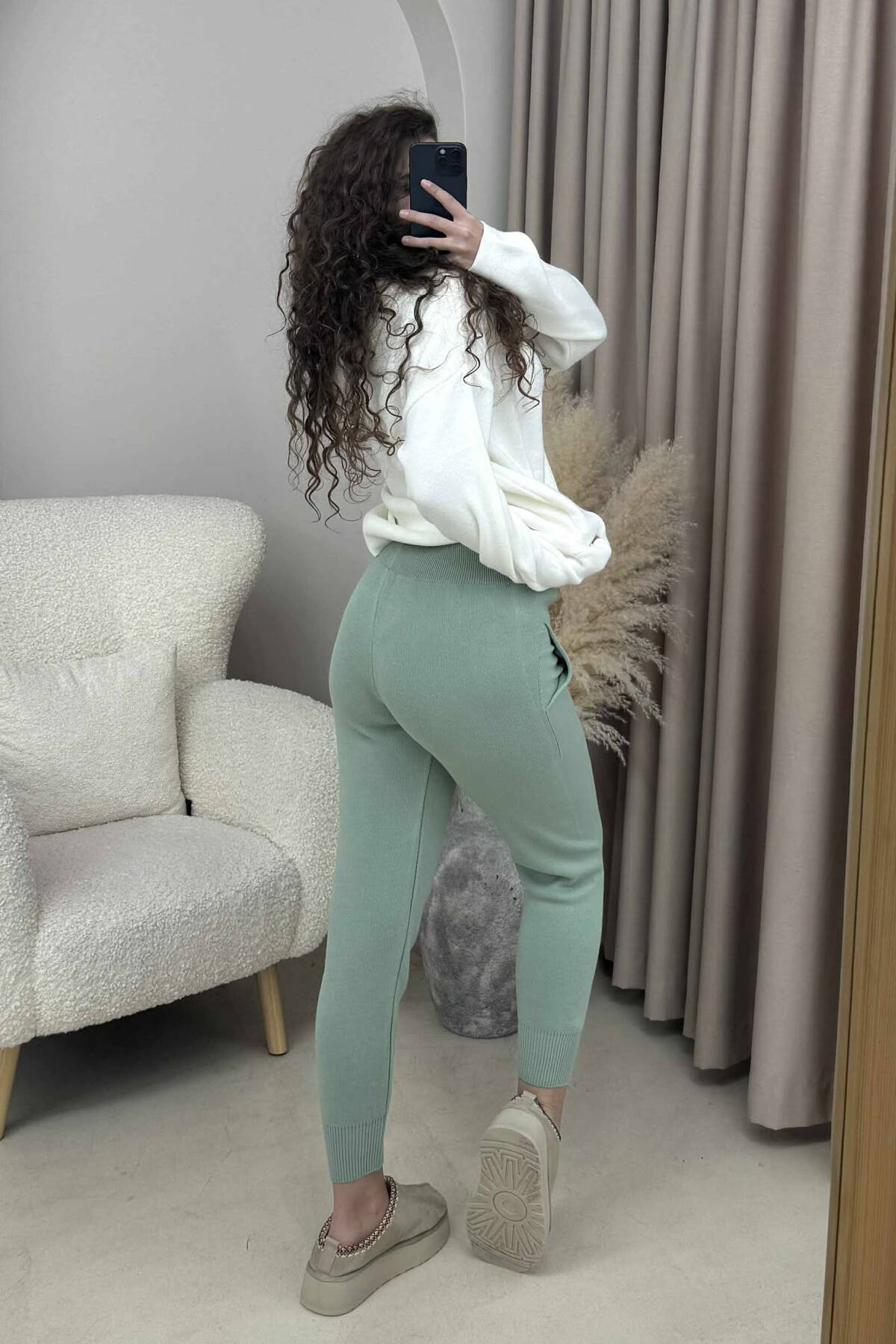 PANTALLONA TË THURRURA NJË NGJYRËSHE ME LIDHËSE PËR FEMRA NË NGJYRË MENTE