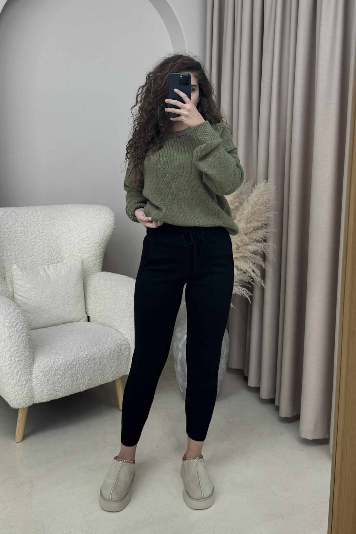 PANTALLONA ME SHKRIM ALO ME BEL ELASTIK PËR FEMRA NË NGJYRË TË ZEZË