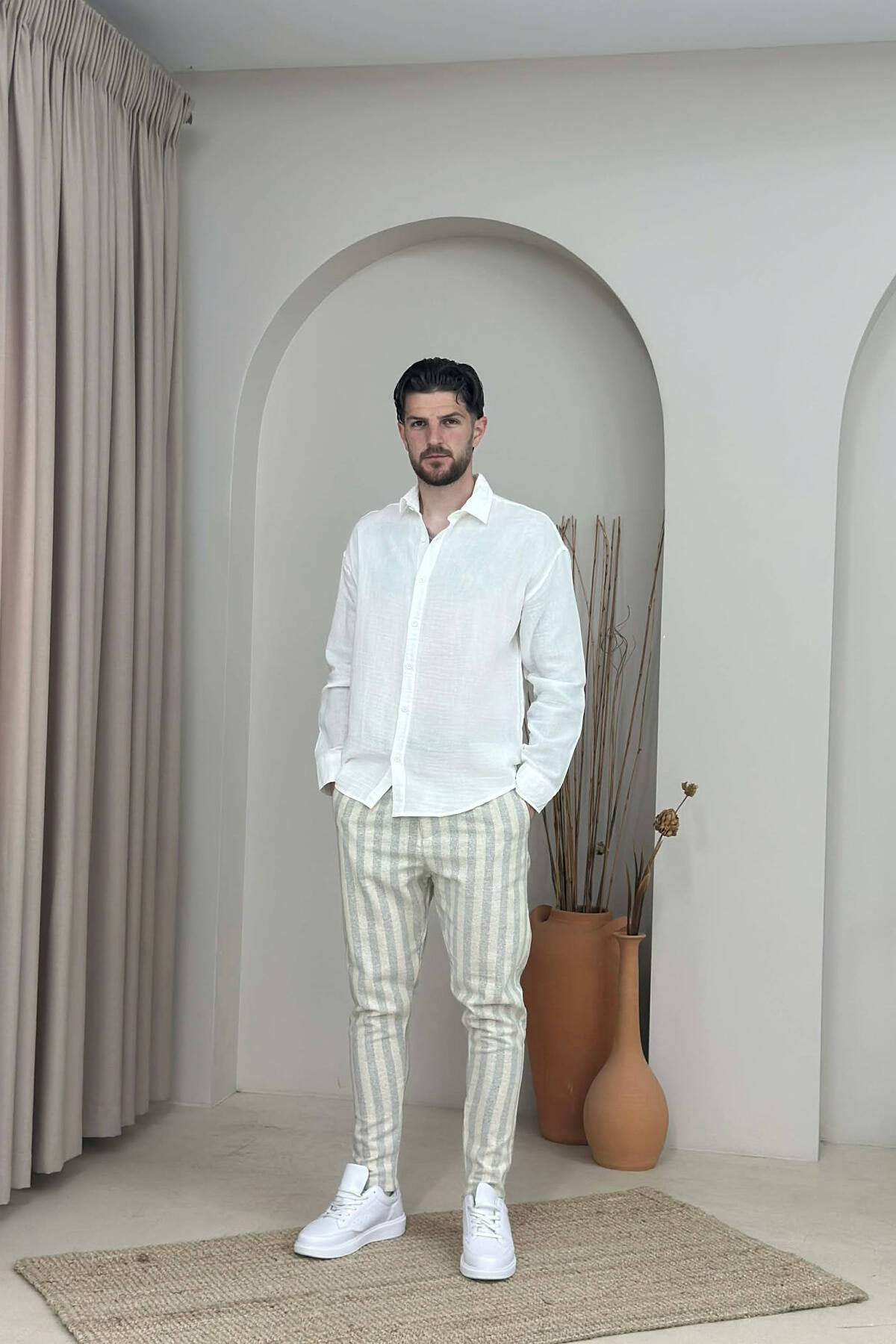 PANTALLONA LINO PER MESHKUJ NE NGJYRE BEZHE