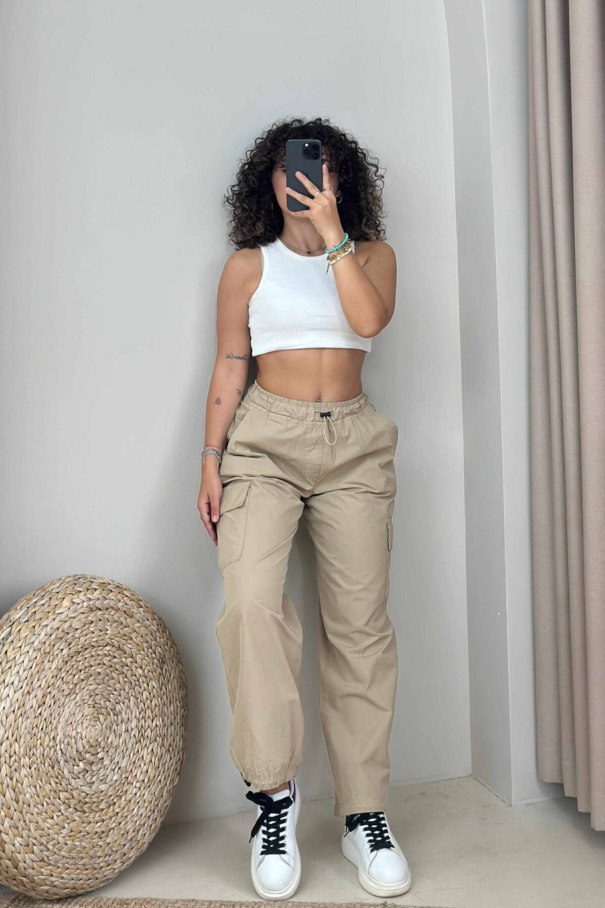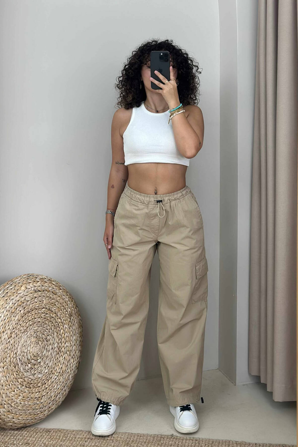 PARACHUTE SIDE POCKETS WOMEN TROUSERS BEIGE/BEZHE