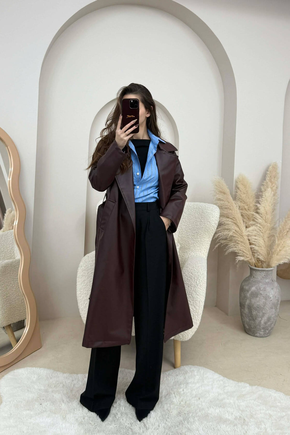 PARDESY E GJATË LËKURE ME LIDHËSE PËR FEMRA NË NGJYRË VISHNJE