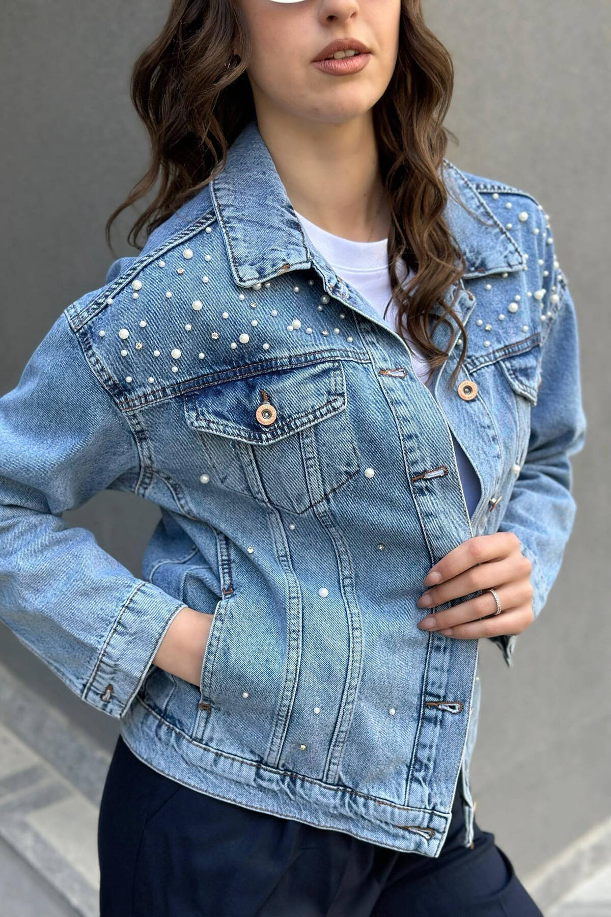 PEARLS STONES DENIM WOMAN JACKET LIGHTBLUE/BZ