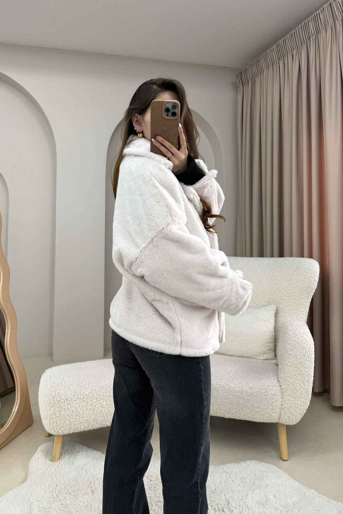 PALLTO PELLUSHI PER FEMRA NE NGJYRE KREM
