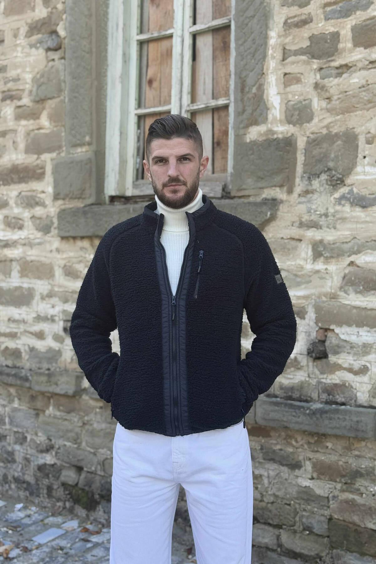 LEATHER ONE COLOR ZIPPER MEN JACKET BLACK/ E ZEZE