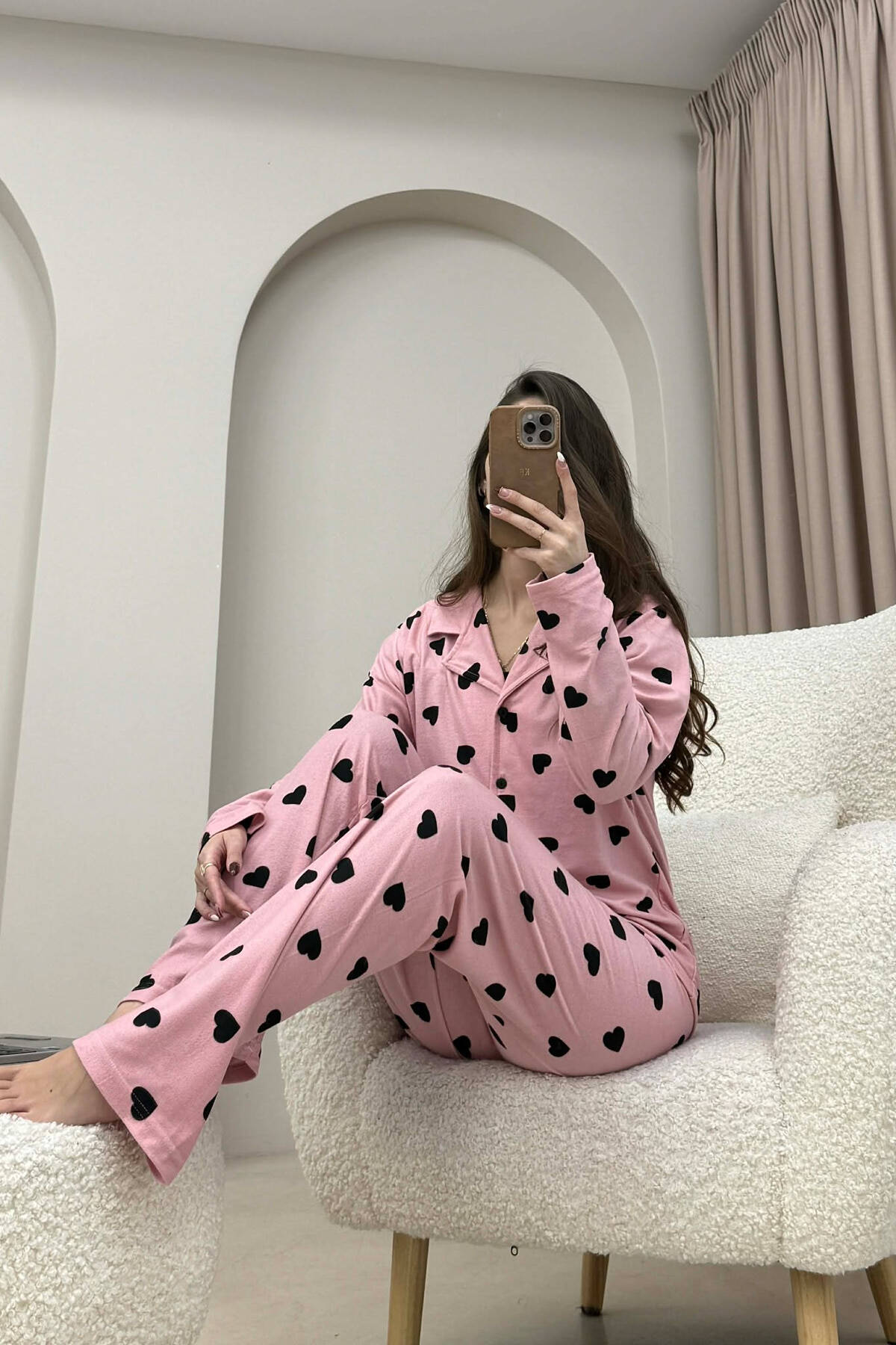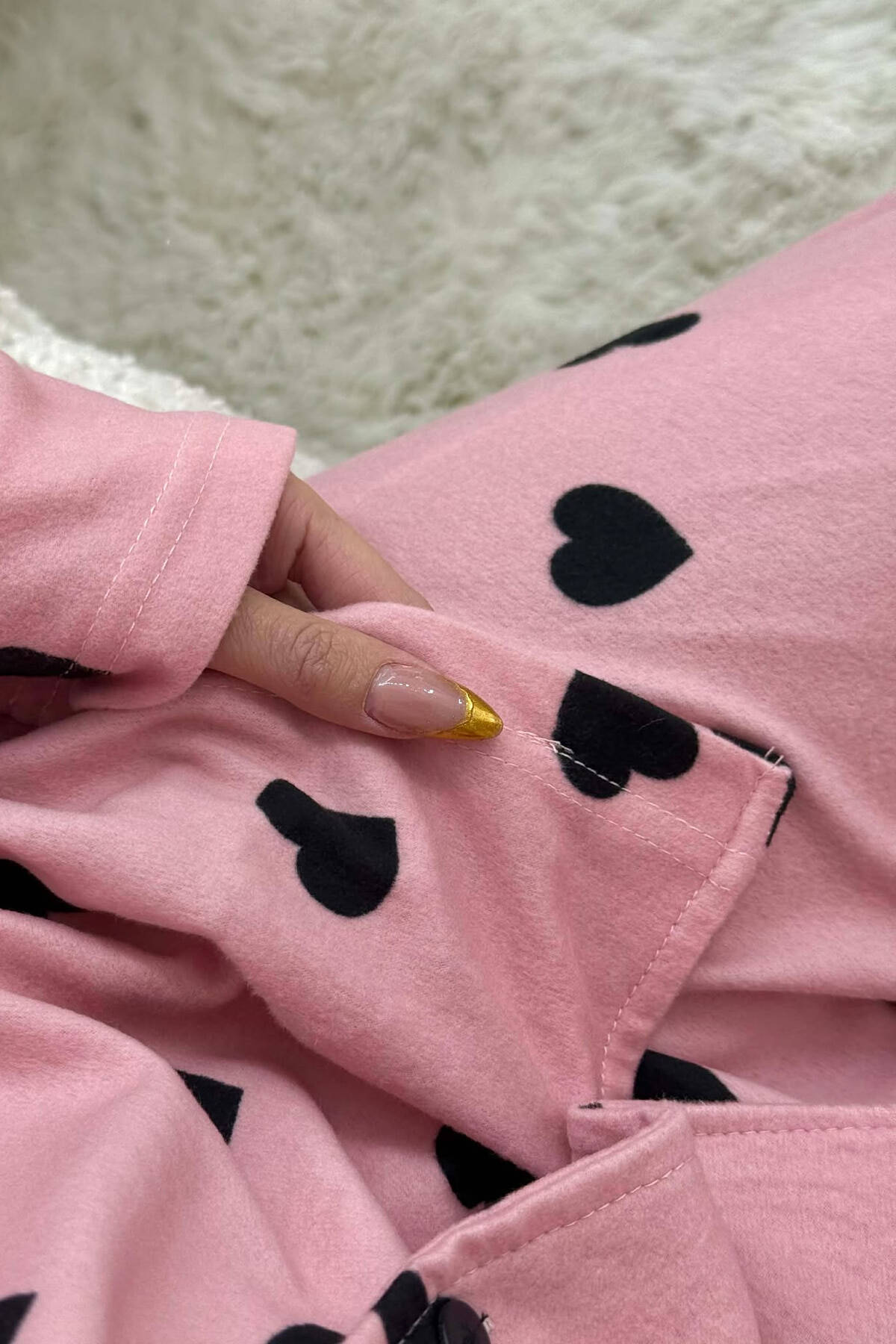 PIZHAMA ME DIZAJN ME ZEMRA BLUZË+PANTALLONA PËR FEMRA NE NGJYRE PUDER