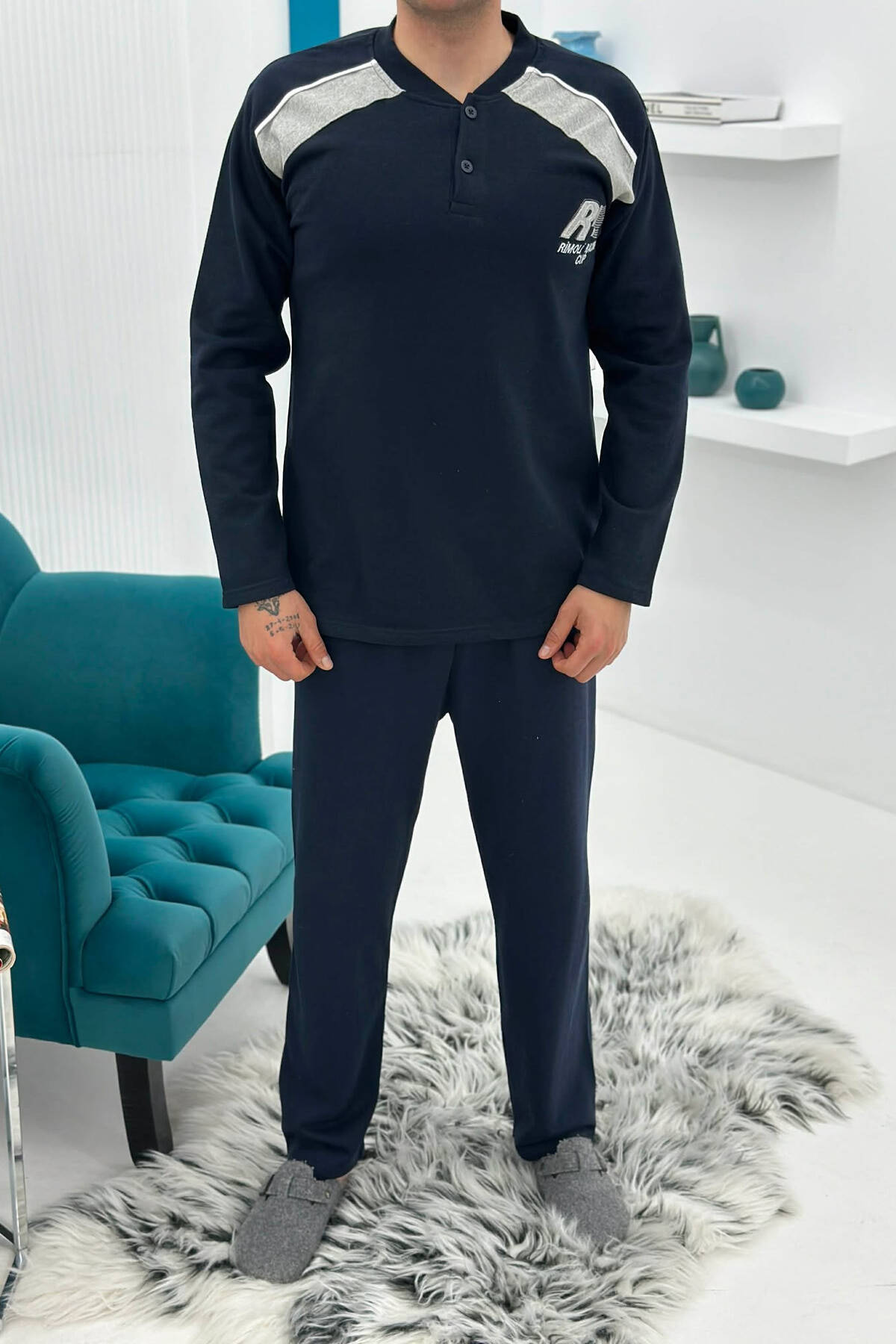 PIZHAME BLUZE E THJESHTE ME BUTONA + TUTA PER MESHKUJ NE NGJYRE BLU TE ERRET