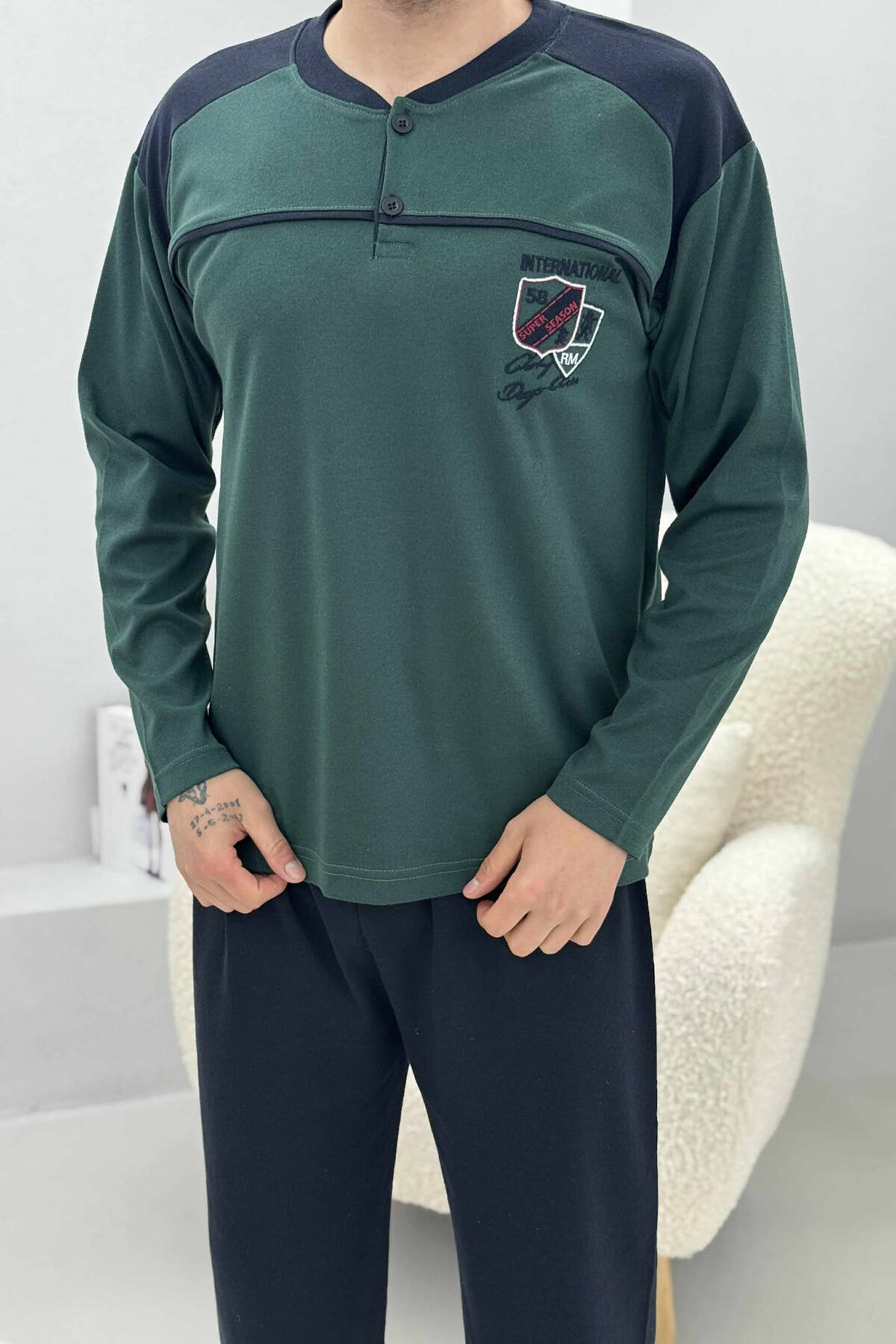 PIZHAME BLUZË ME BUTONA+TUTA PËR MESHKUJ NË NGJYRË JESHILE