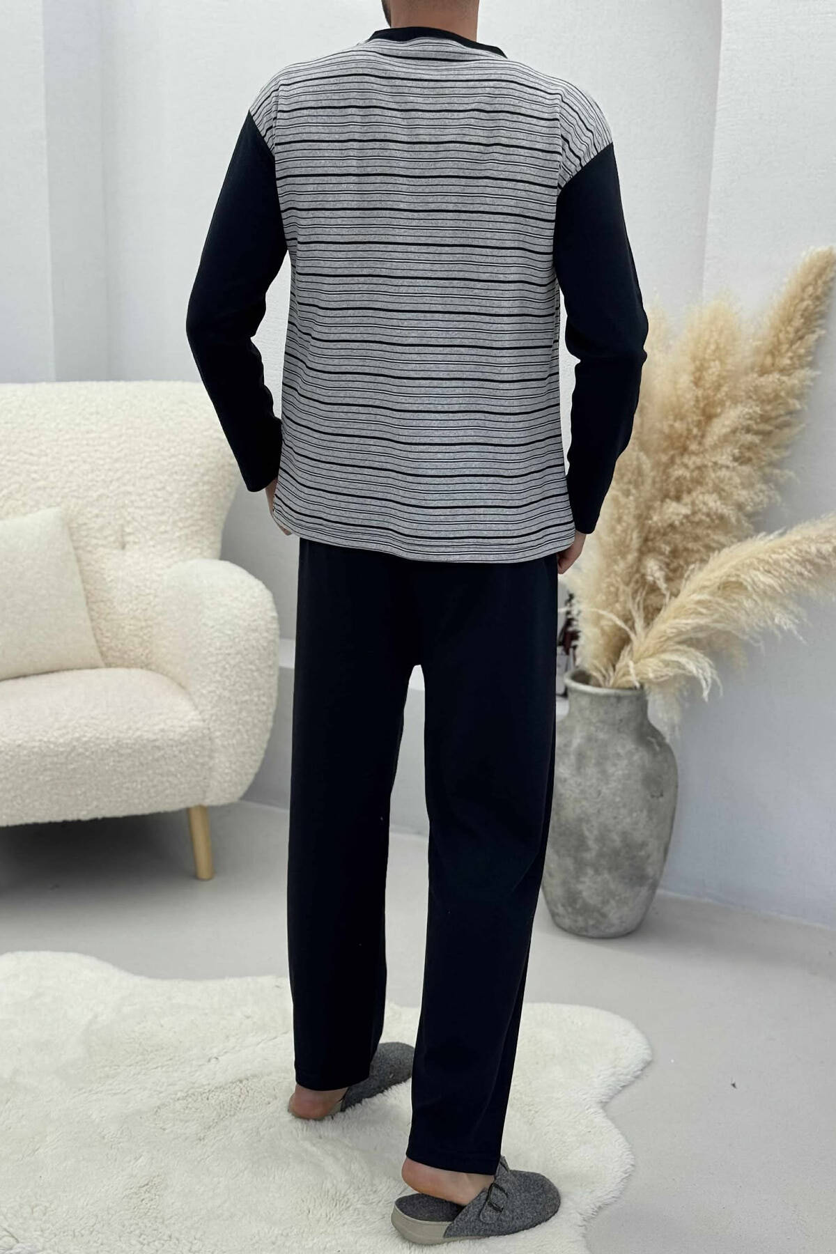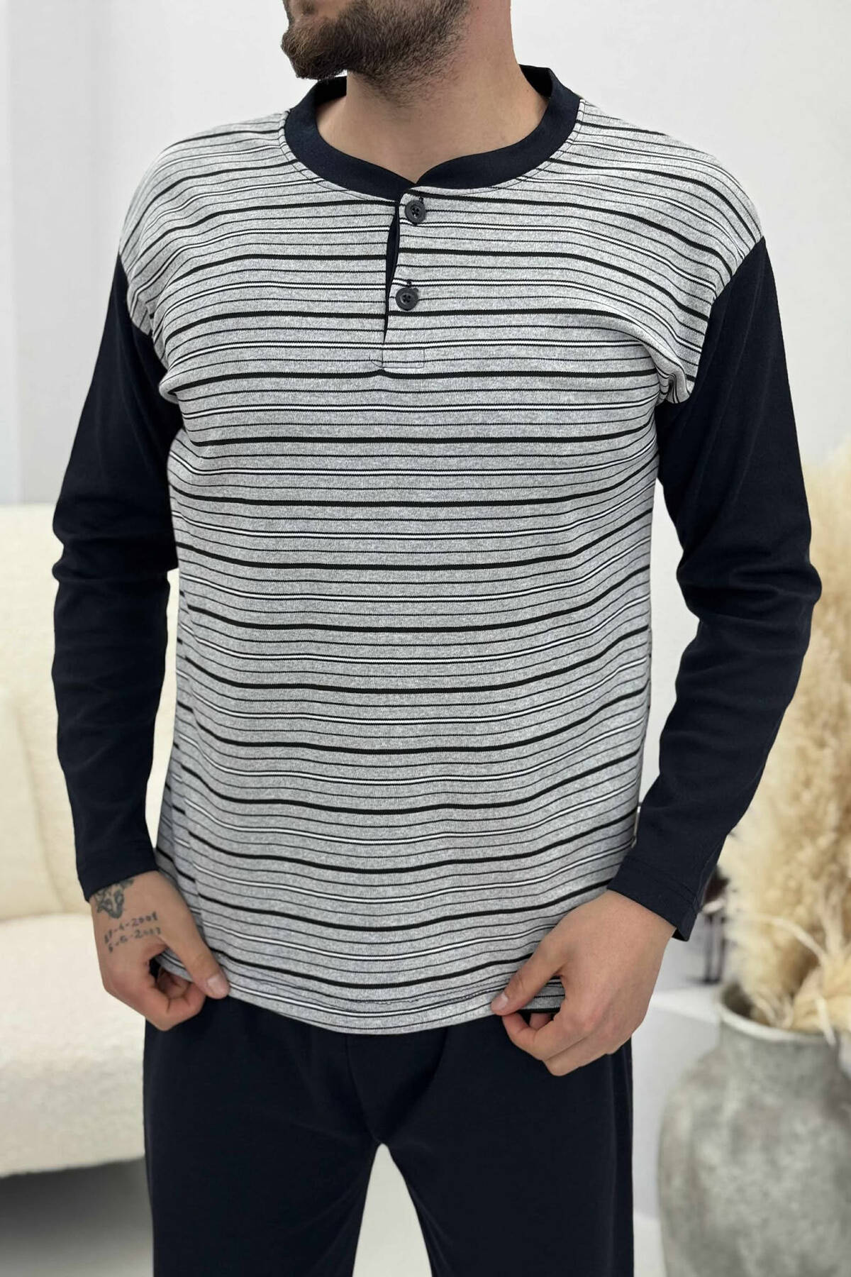 PIZHAME BLUZË ME DIZAJN ME VIJA DHE BUTONA+TUTA PËR MESHKUJ NË NGJYRË GRI