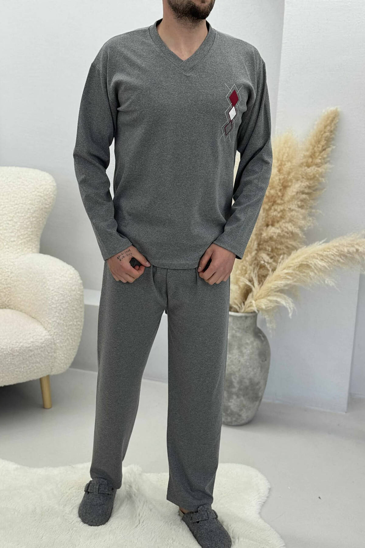 PIZHAME BLUZË ME JAKË V DHE ME DIZAJNE ROMBESH+TUTA PËR MESHKUJ NË NGJYRË GRI