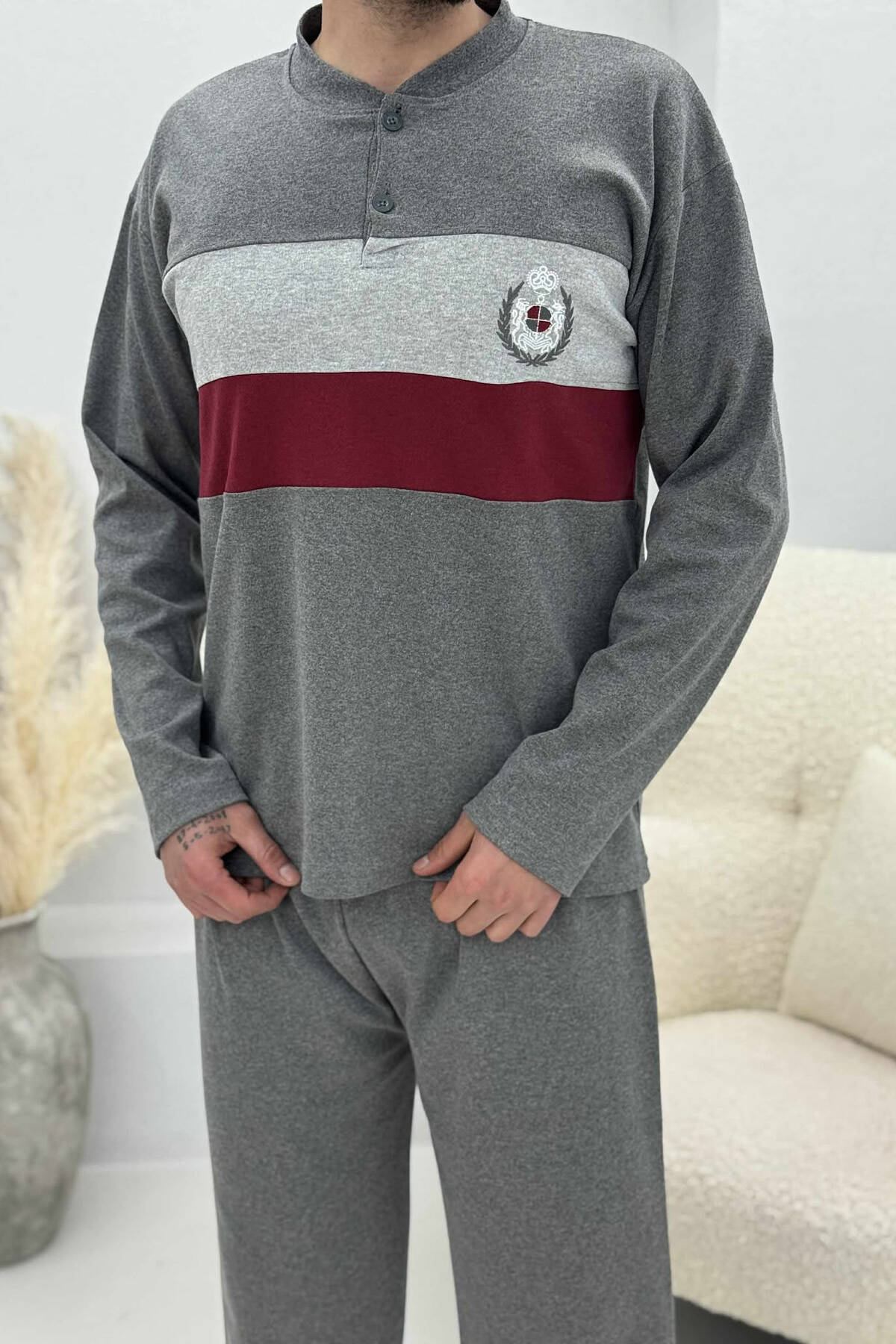 PIZHAME BLUZË ME LOGO NË PJESËN PARA+TUTA PËR MESHKUJ NË NGJYRË GRI