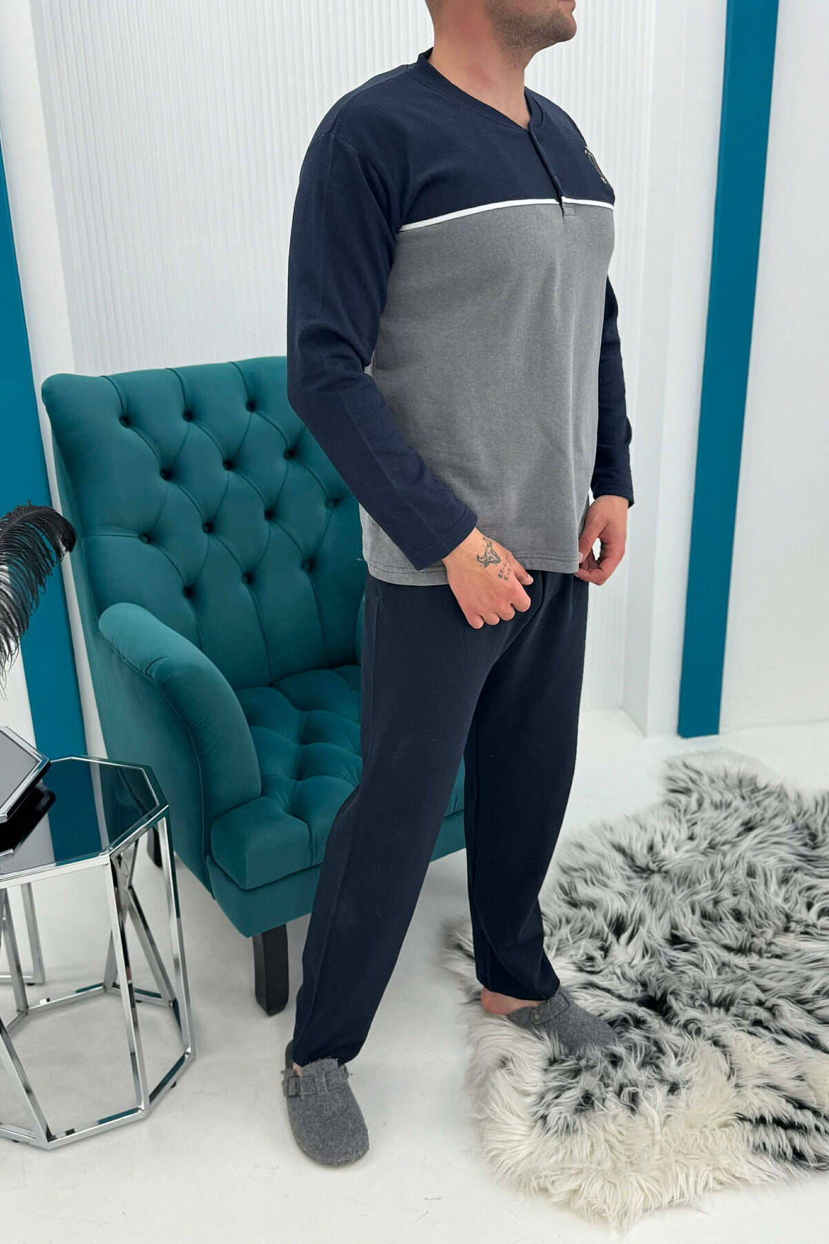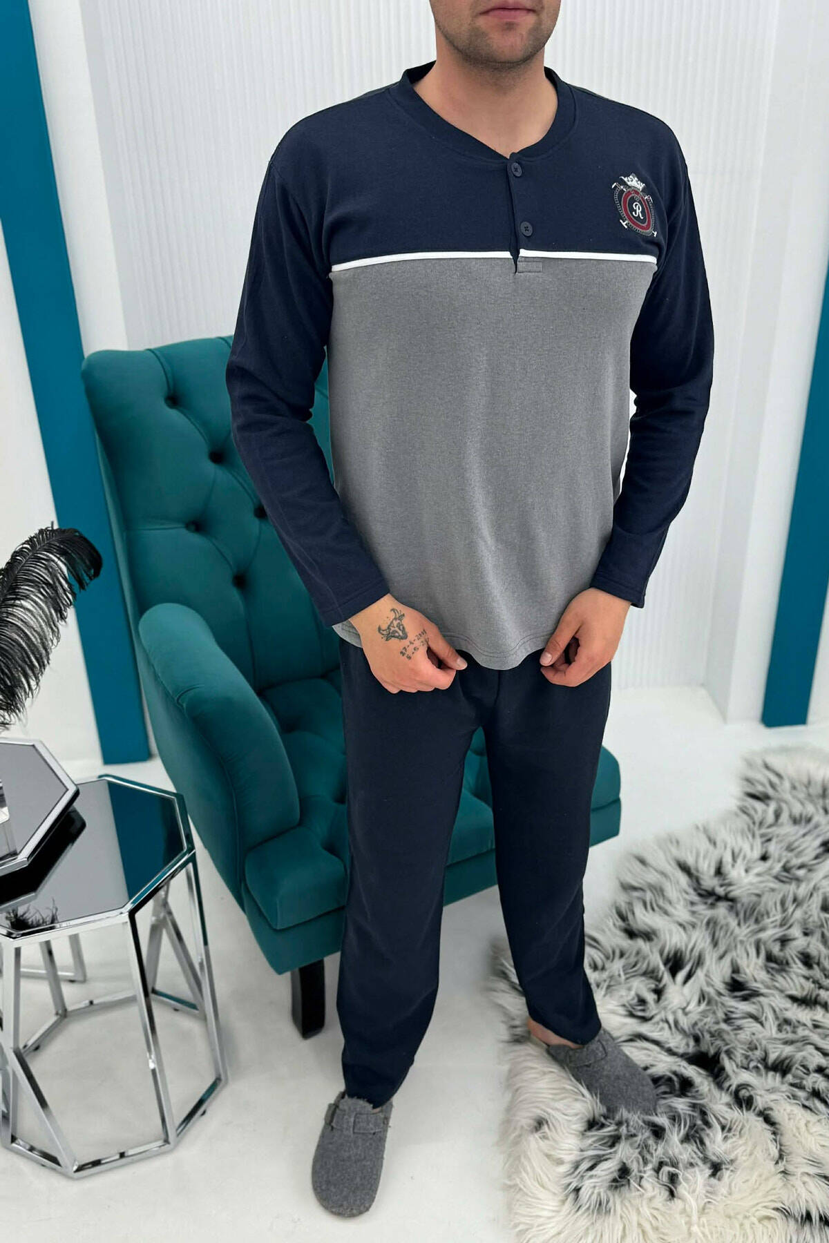 PIZHAME BLUZE ME LOGO TË THJESHTE+TUTA PER MESHKUJ NE NGJYRE GRI ME BLU