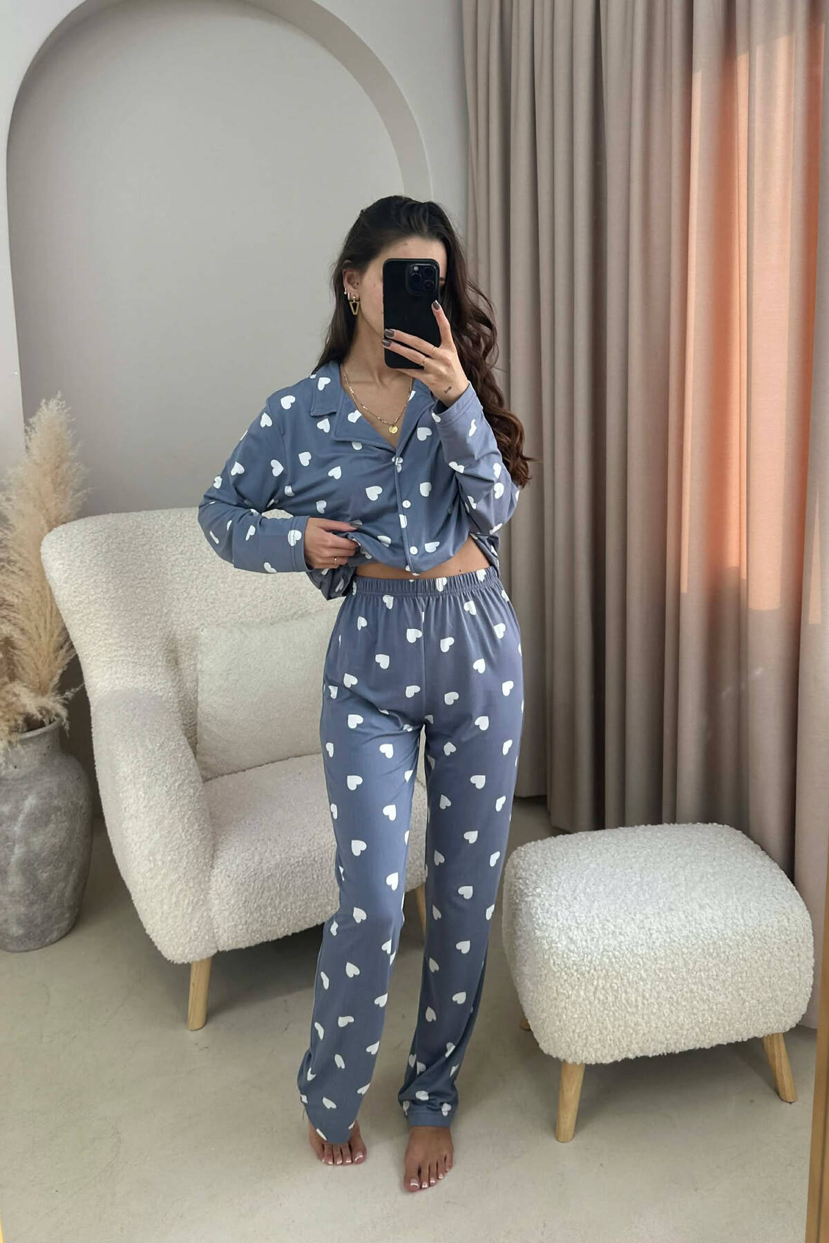 PIZHAME KËMISHË ME DIZAJN ME ZEMRA+TUTA PËR FEMRA NË NGJYRË GRI