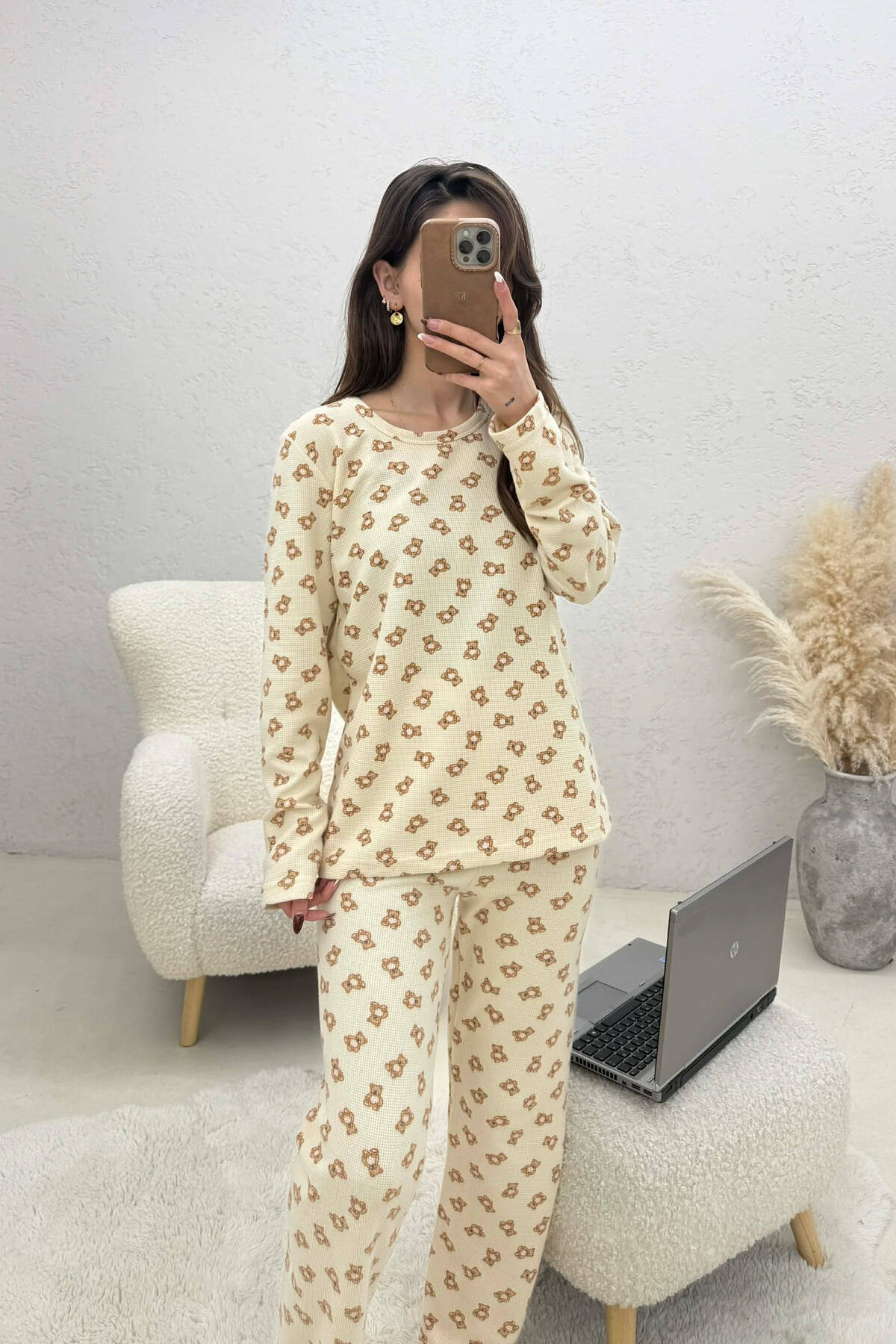 PIZHAME ME DIZAJN ME ARUSH BLUZE + TUTA PER FEMRA NE NGJYRE KREM
