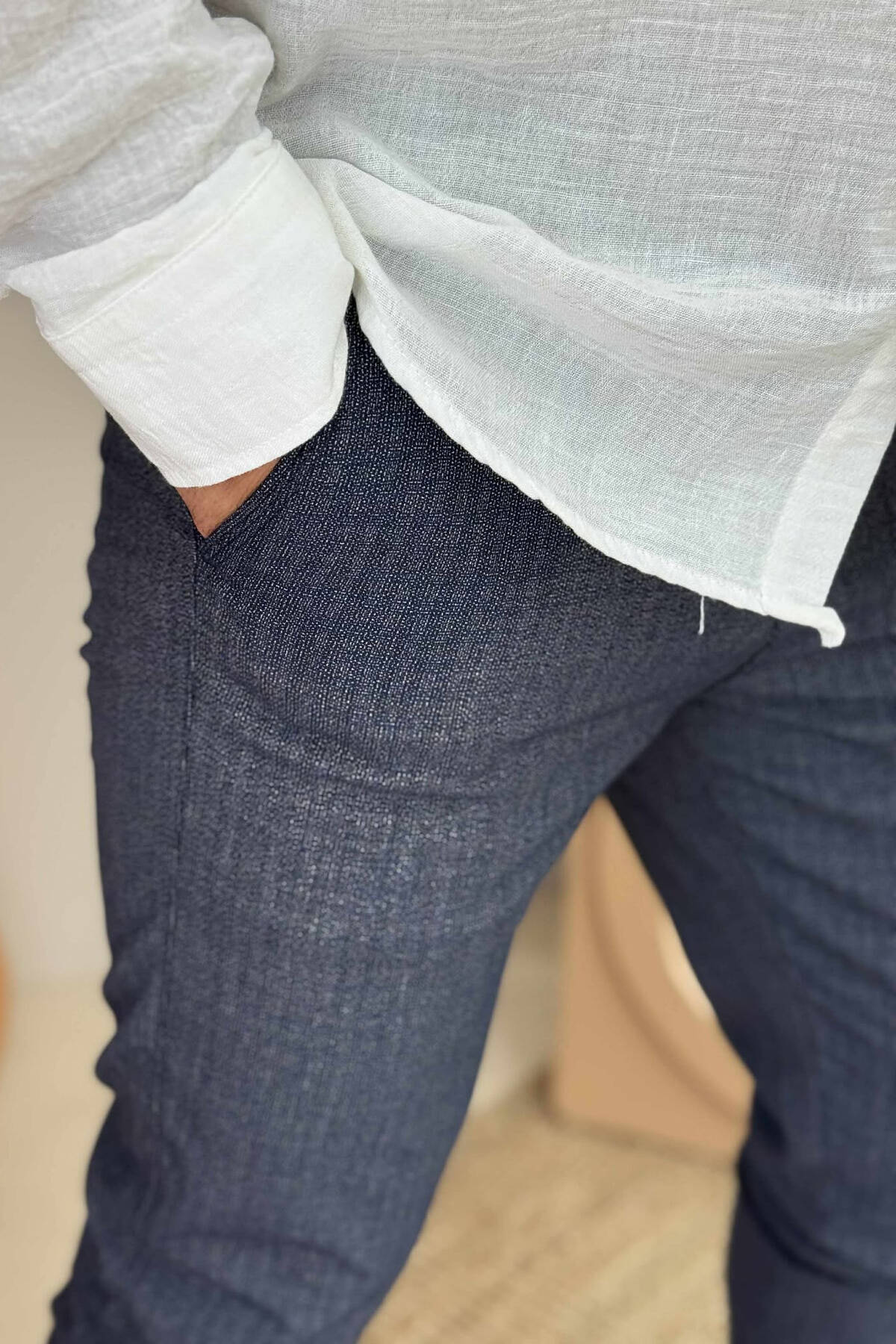 ONE COLOR SEMI ELASTIC WAIST MEN PANTS BLUE/BLU