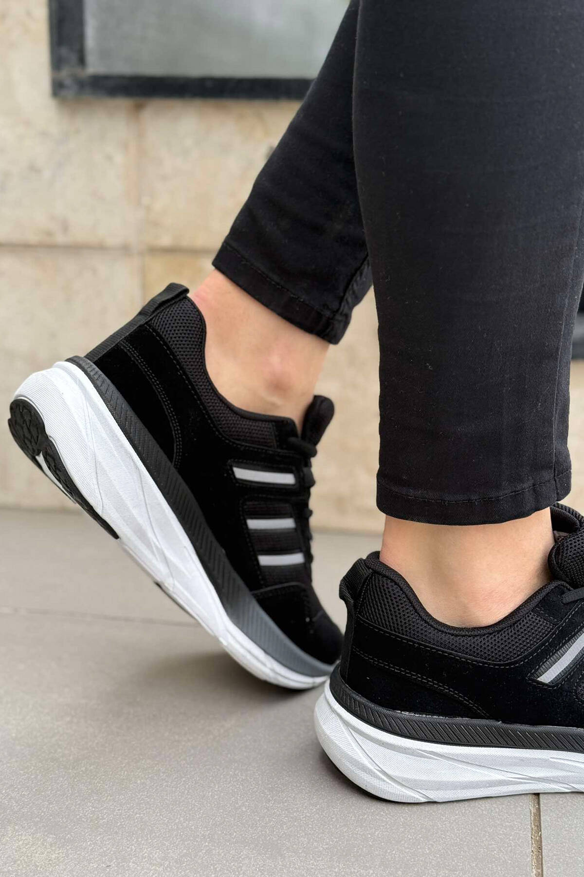 PLATFORM LACING RUNNING WOMEN SNEAKERS BLACK-WHITE/ZEBA