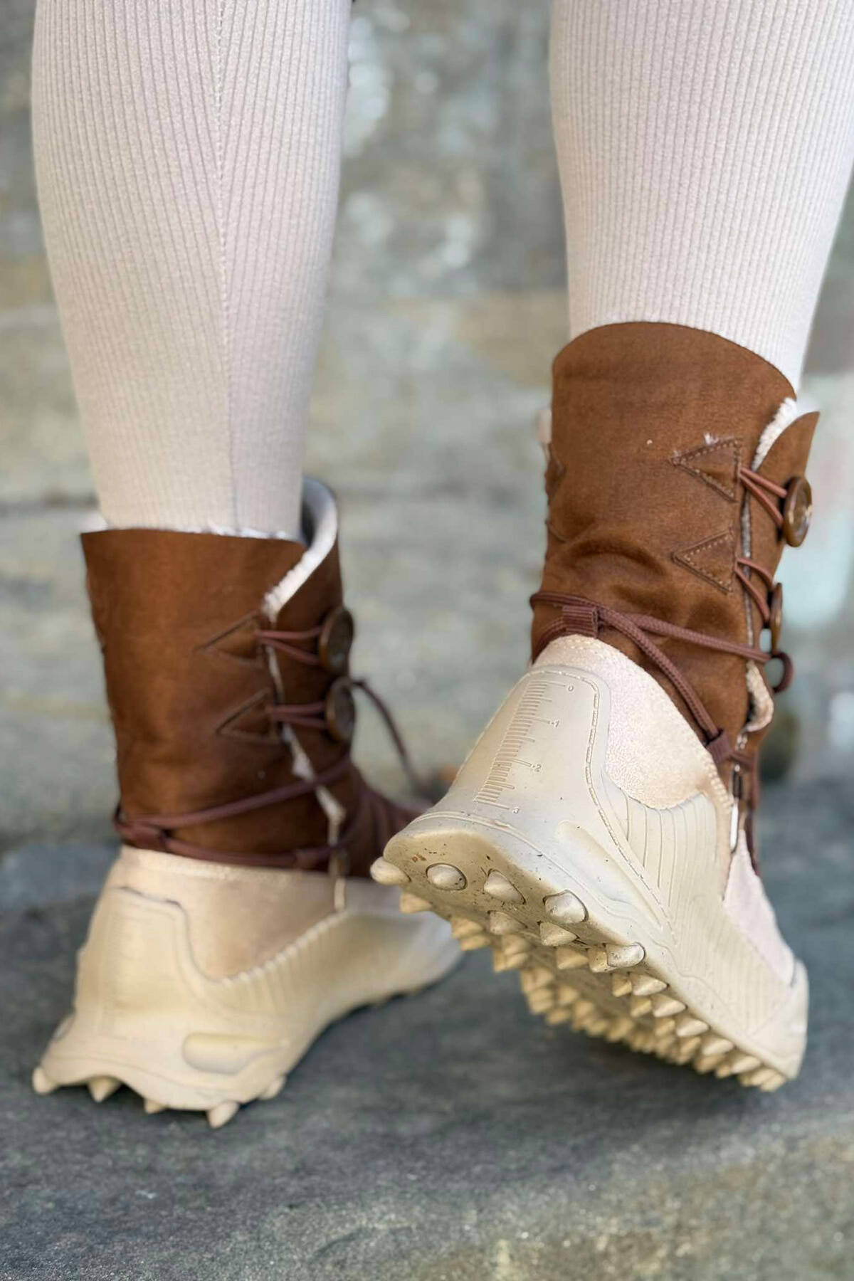 FLUFFY LACING WOMAN BOOTS BROWN/KAFE